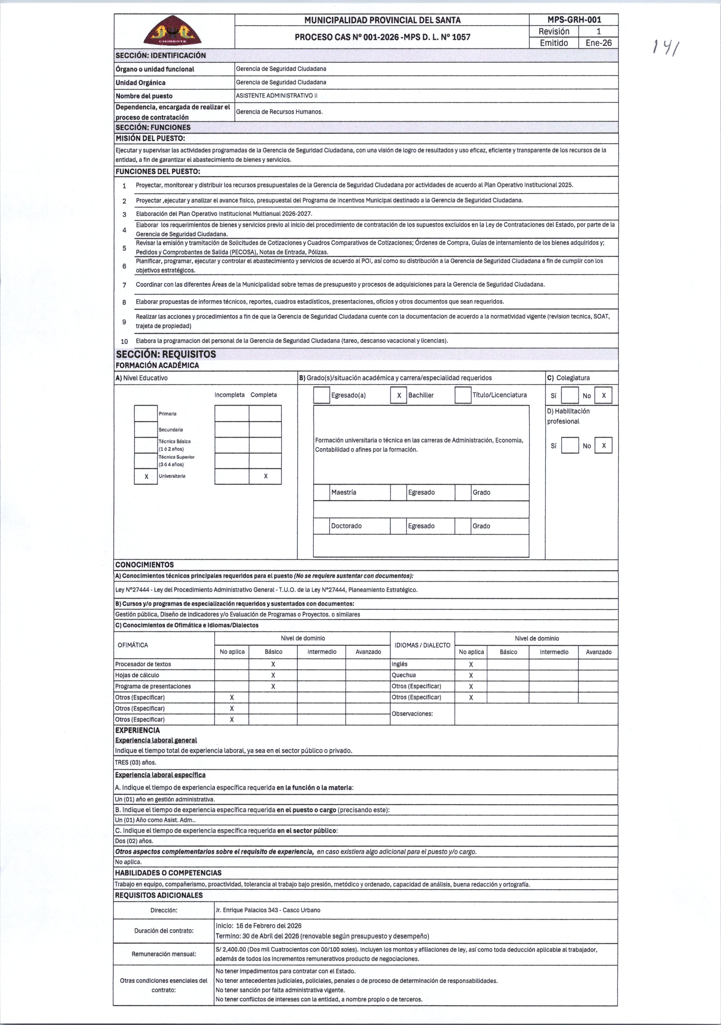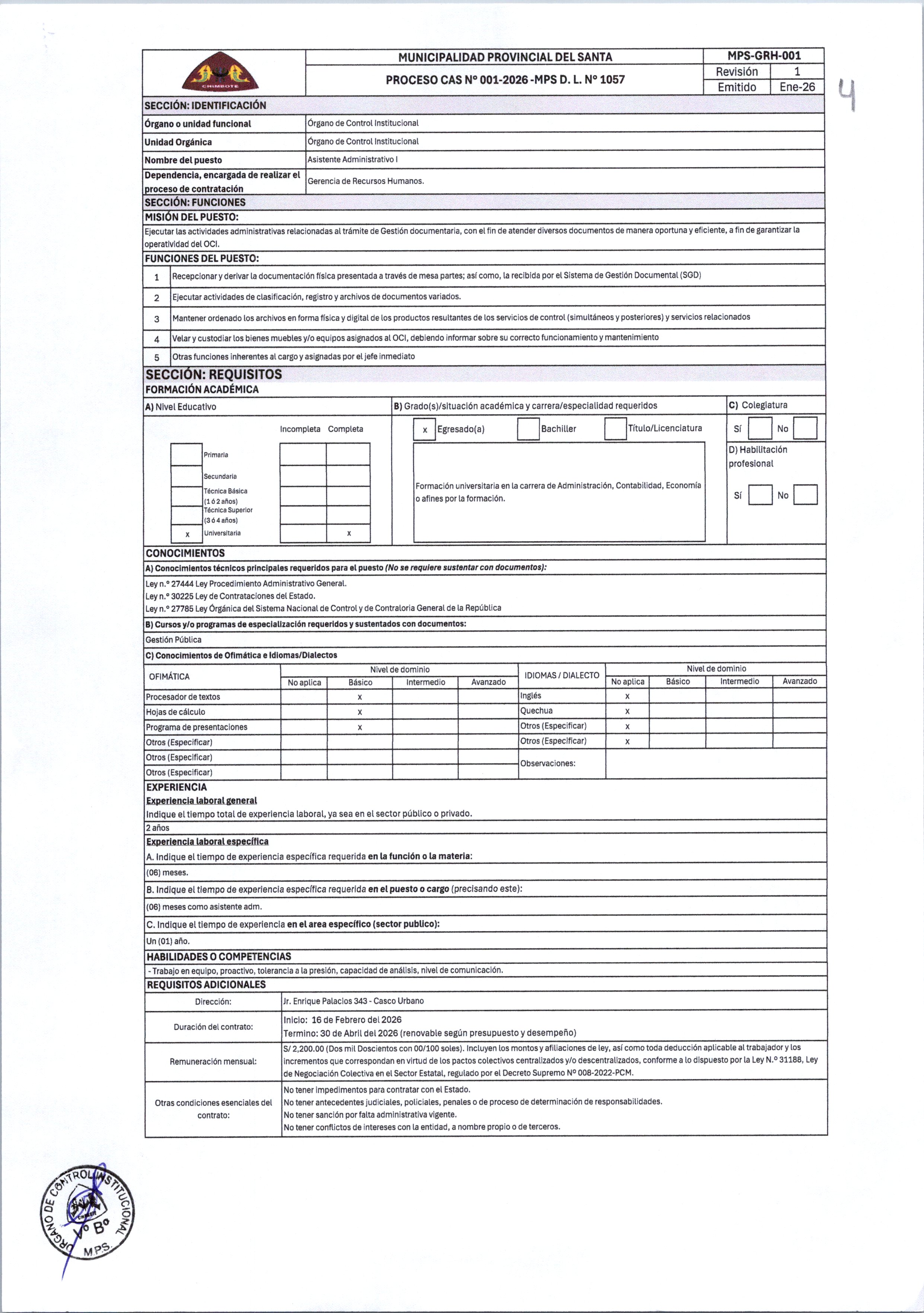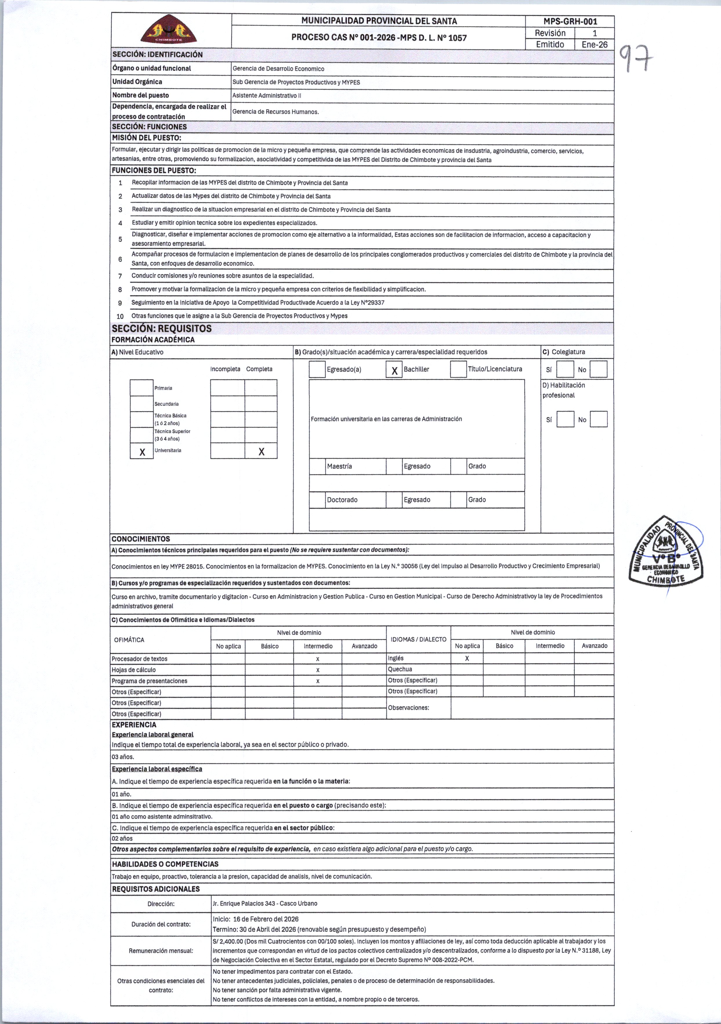 | 24 | PROCESO CAS N° 001-2026-MPS ASISTENTE ADMINISTRATIVO II |