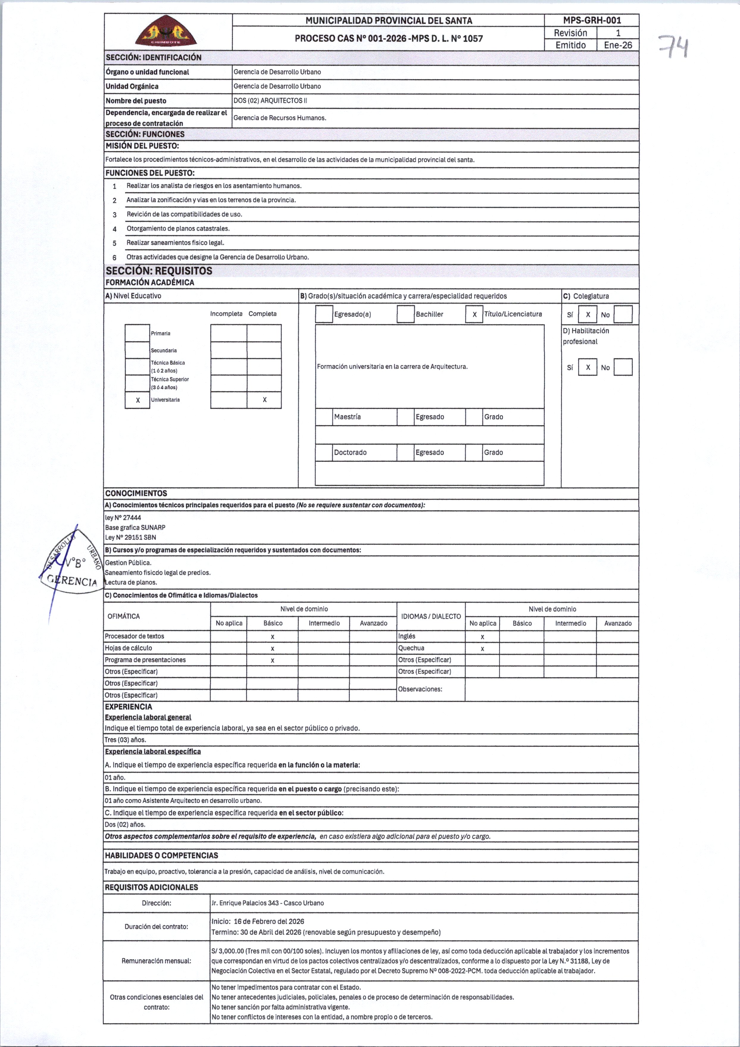 | 64 | PROCESO CAS N° 001-2026-MPS INGENIERO II |
