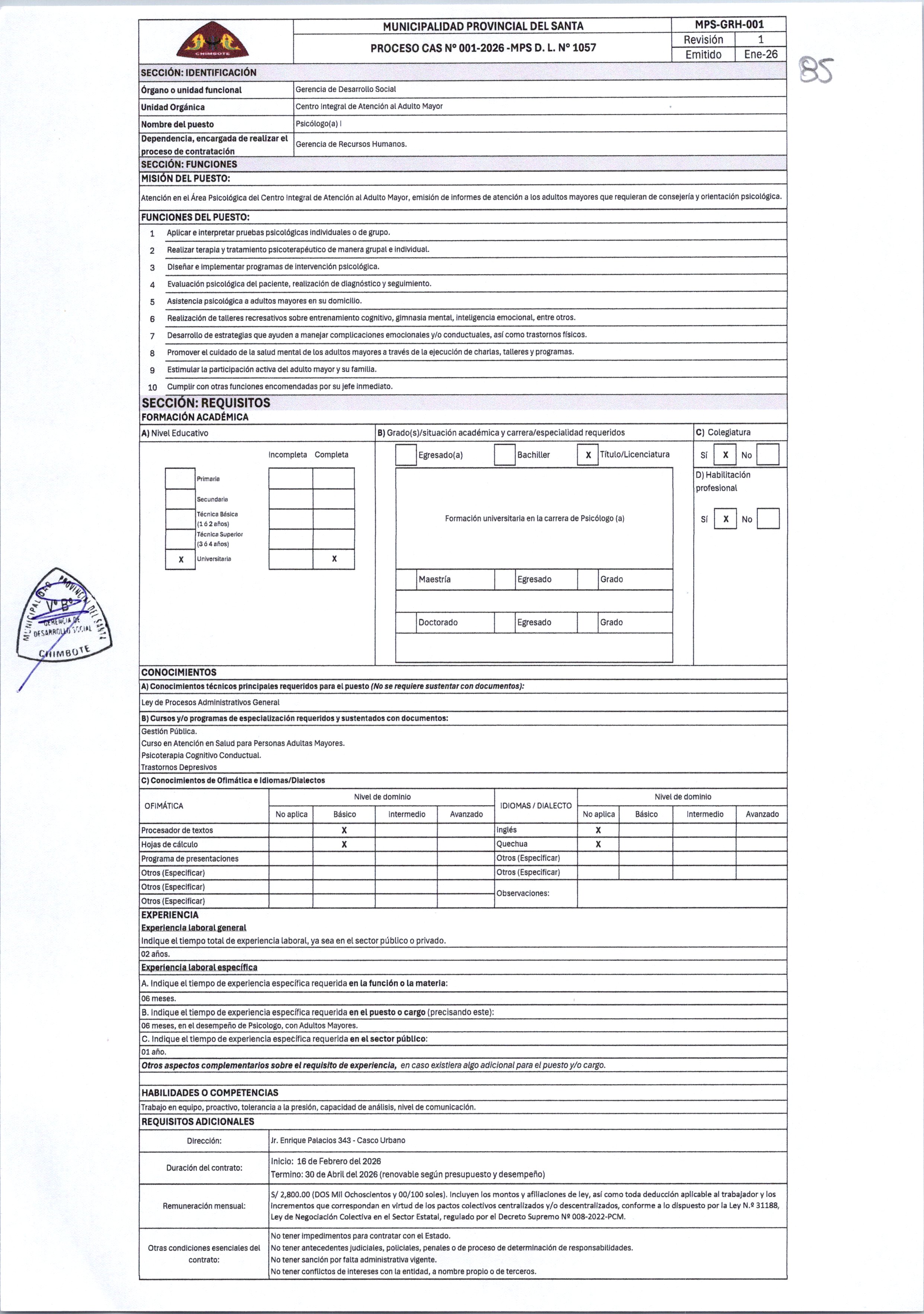 | 85 | PROCESO CAS N° 001-2026-MPS PSICOLOGO (A) I |