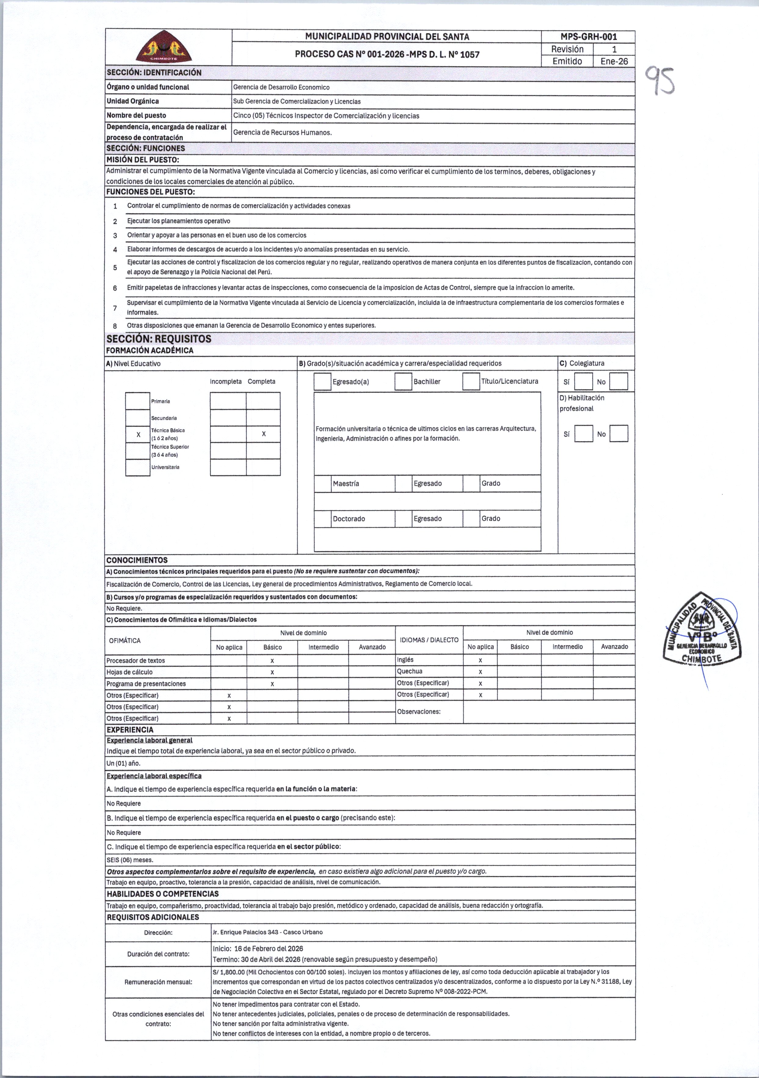 | 95 | PROCESO CAS N° 001-2026-MPS INSPECTOR DE COMERCIALIZACION Y LICENCIAS |