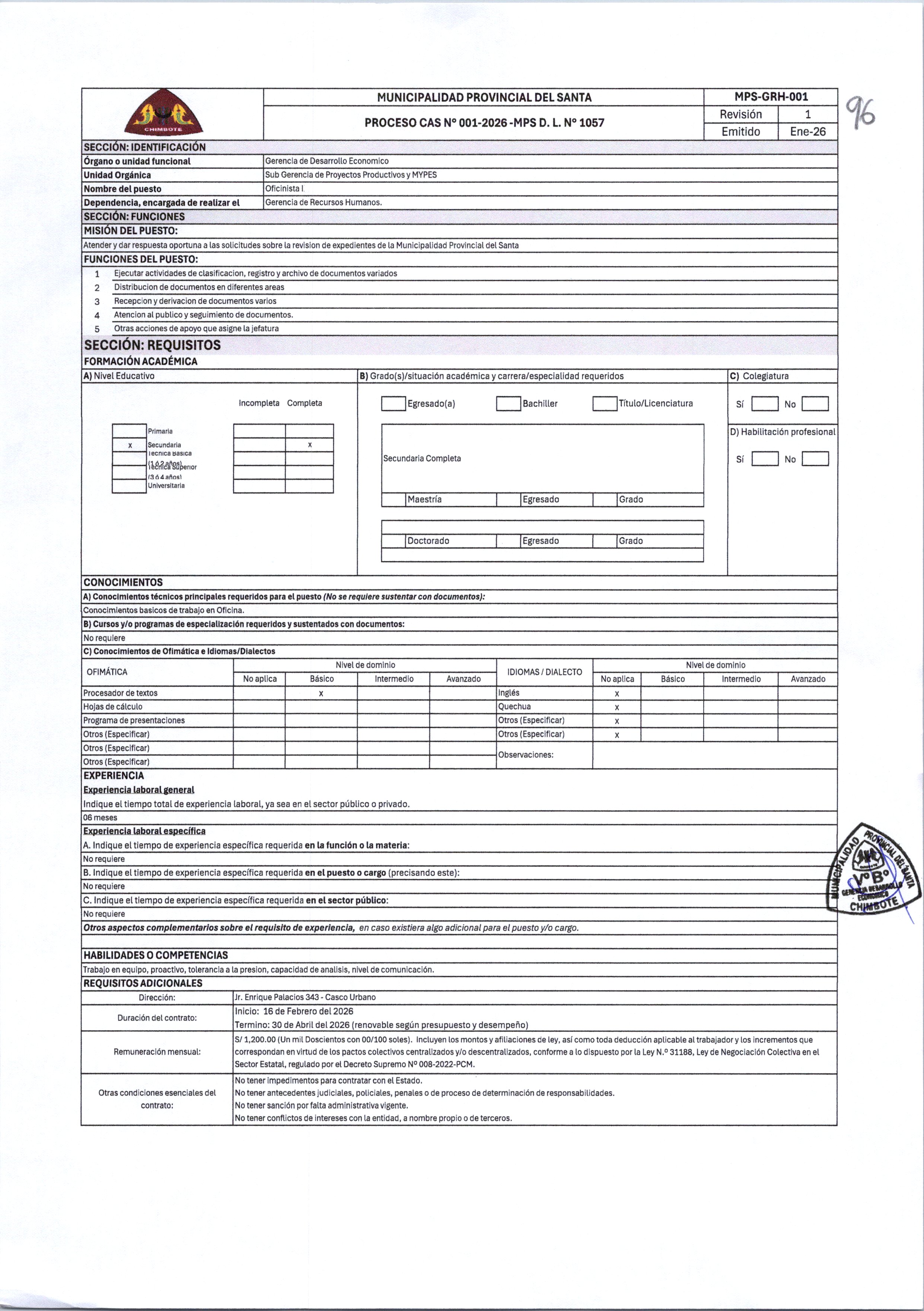 | 96 | PROCESO CAS N° 001-2026-MPS OFICINISTA I |