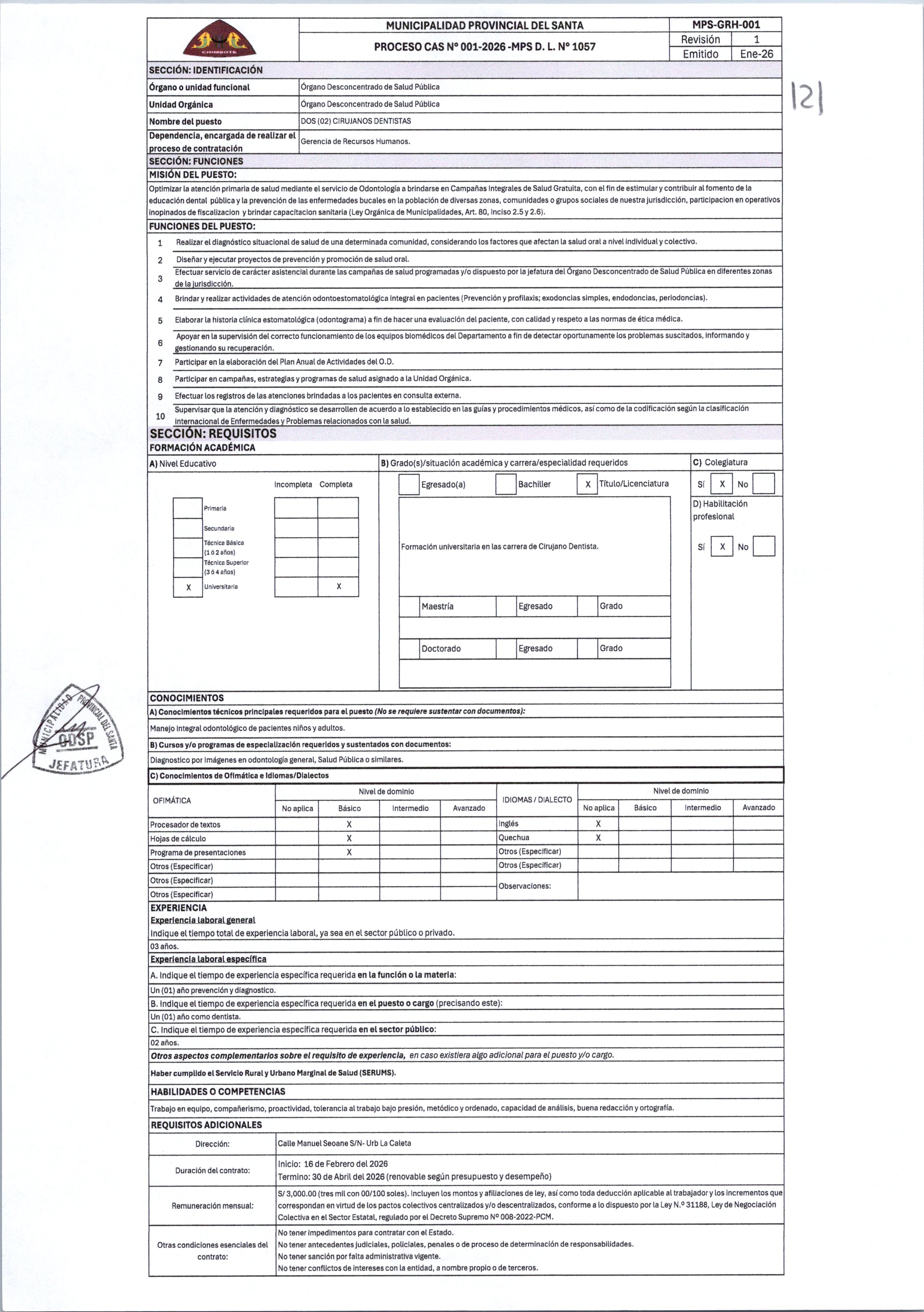 | 121 | PROCESO CAS N° 001-2026-MPS CIRUJANO DENTISTA |