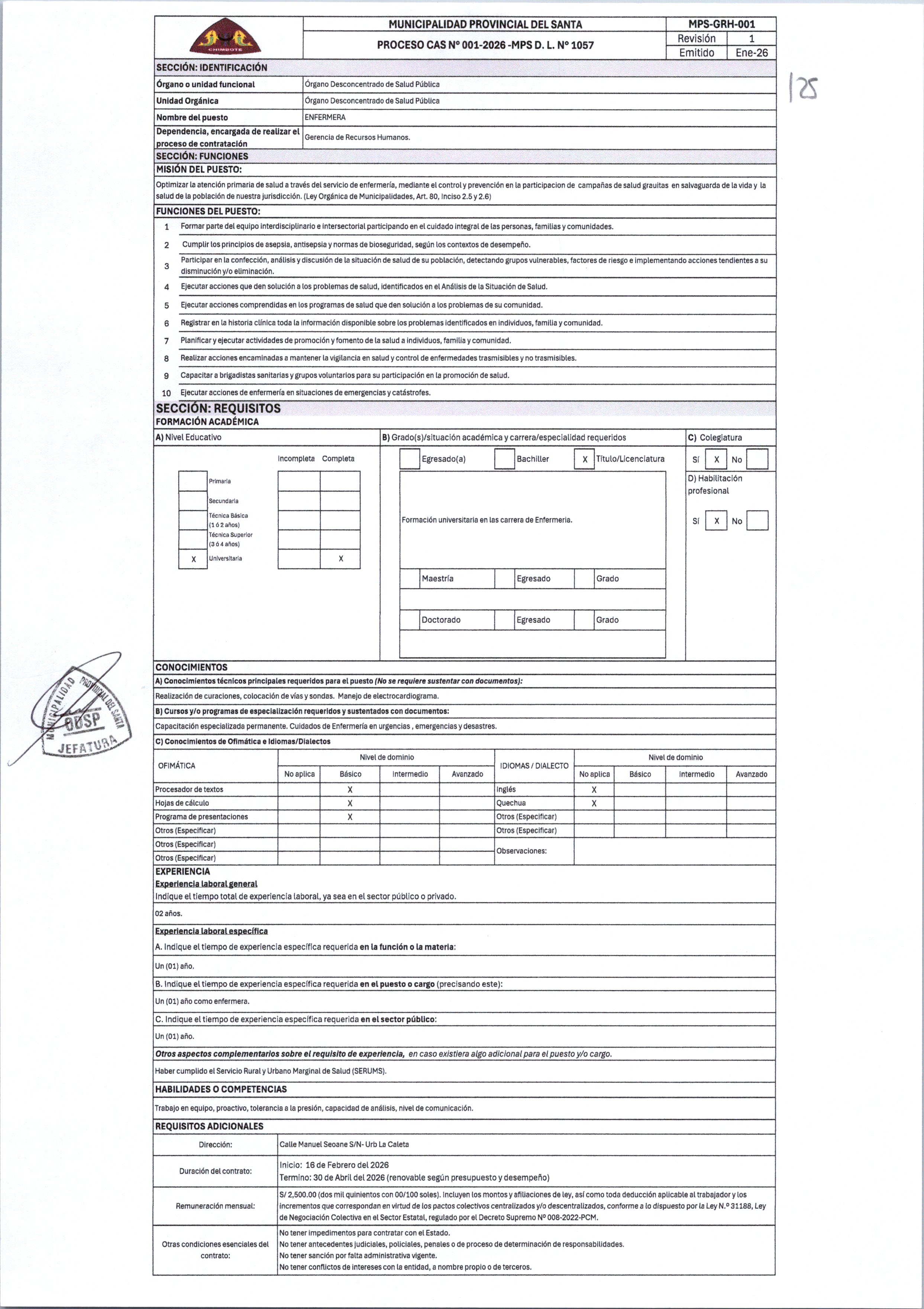 | 125 | PROCESO CAS N° 001-2026-MPS ENFERMERA |