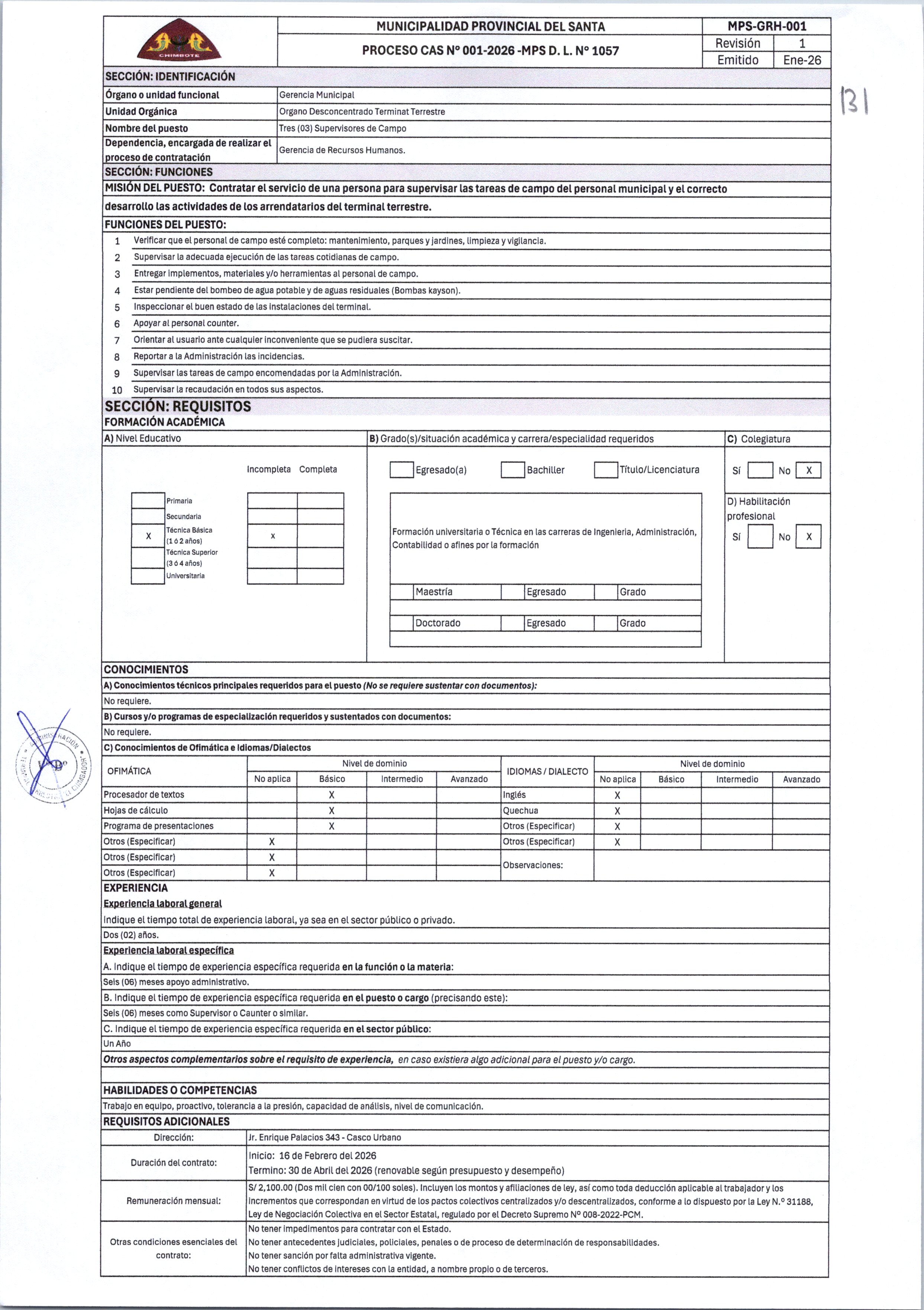 | 131 | PROCESO CAS N° 001-2026-MPS SUPERVISOR DE CAMPO |