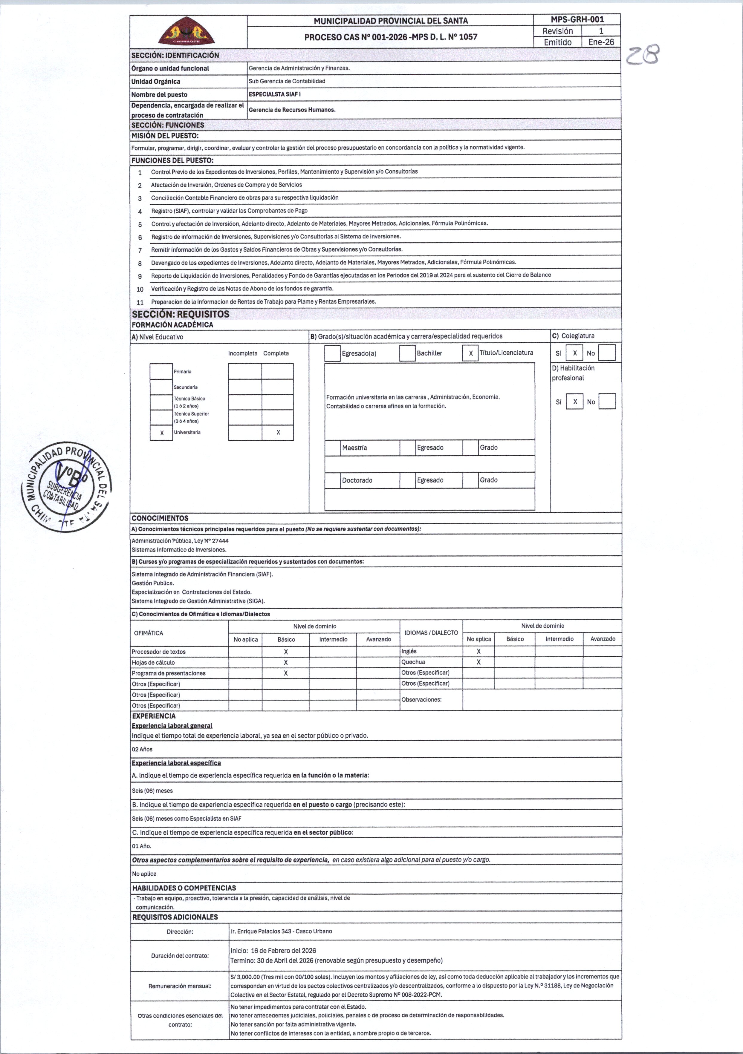 | 28 | PROCESO CAS N° 001-2026-MPS ESPECIALISTA EN SIAF I |