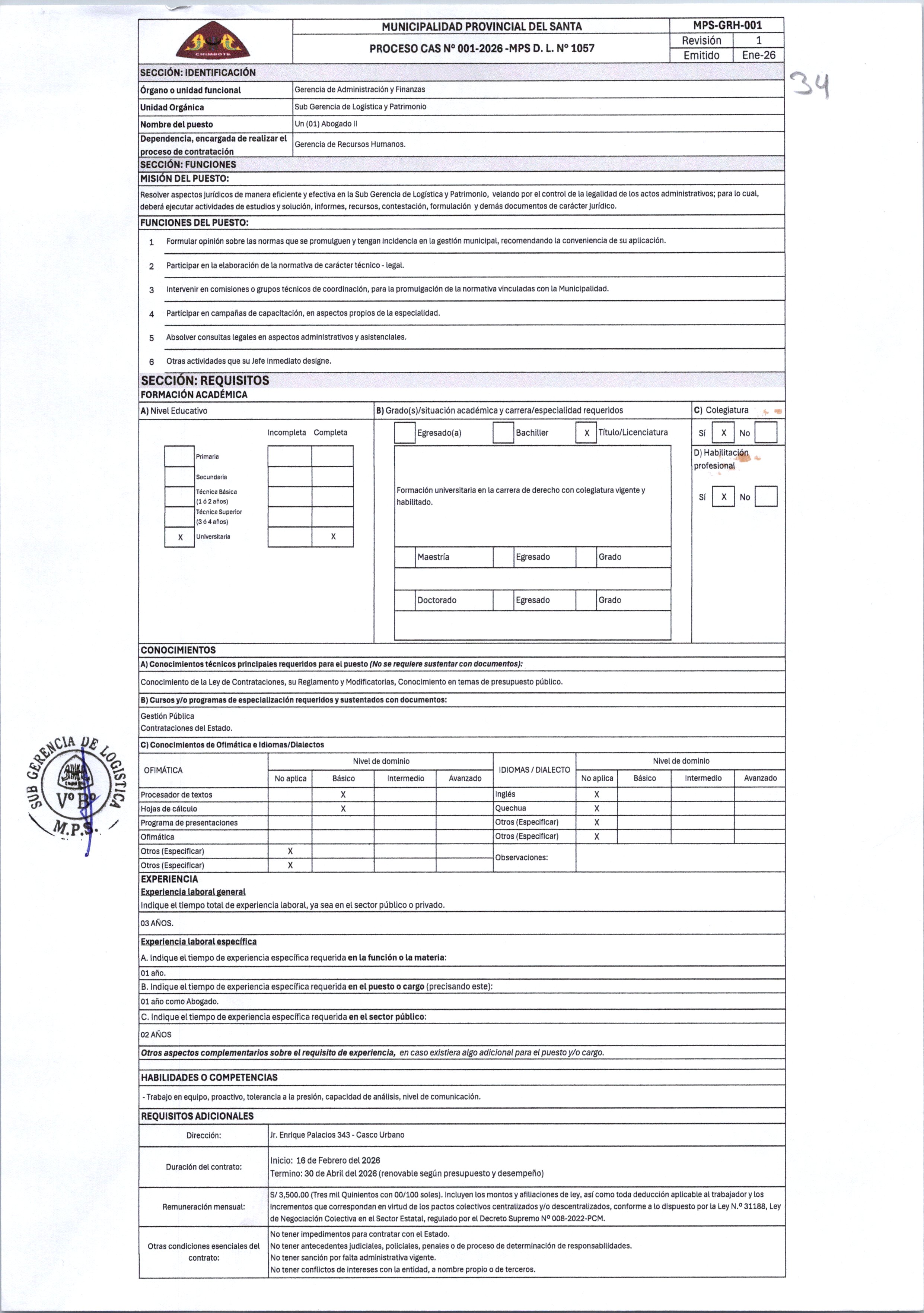| 34 | PROCESO CAS N° 001-2026-MPS ABOGADO II |