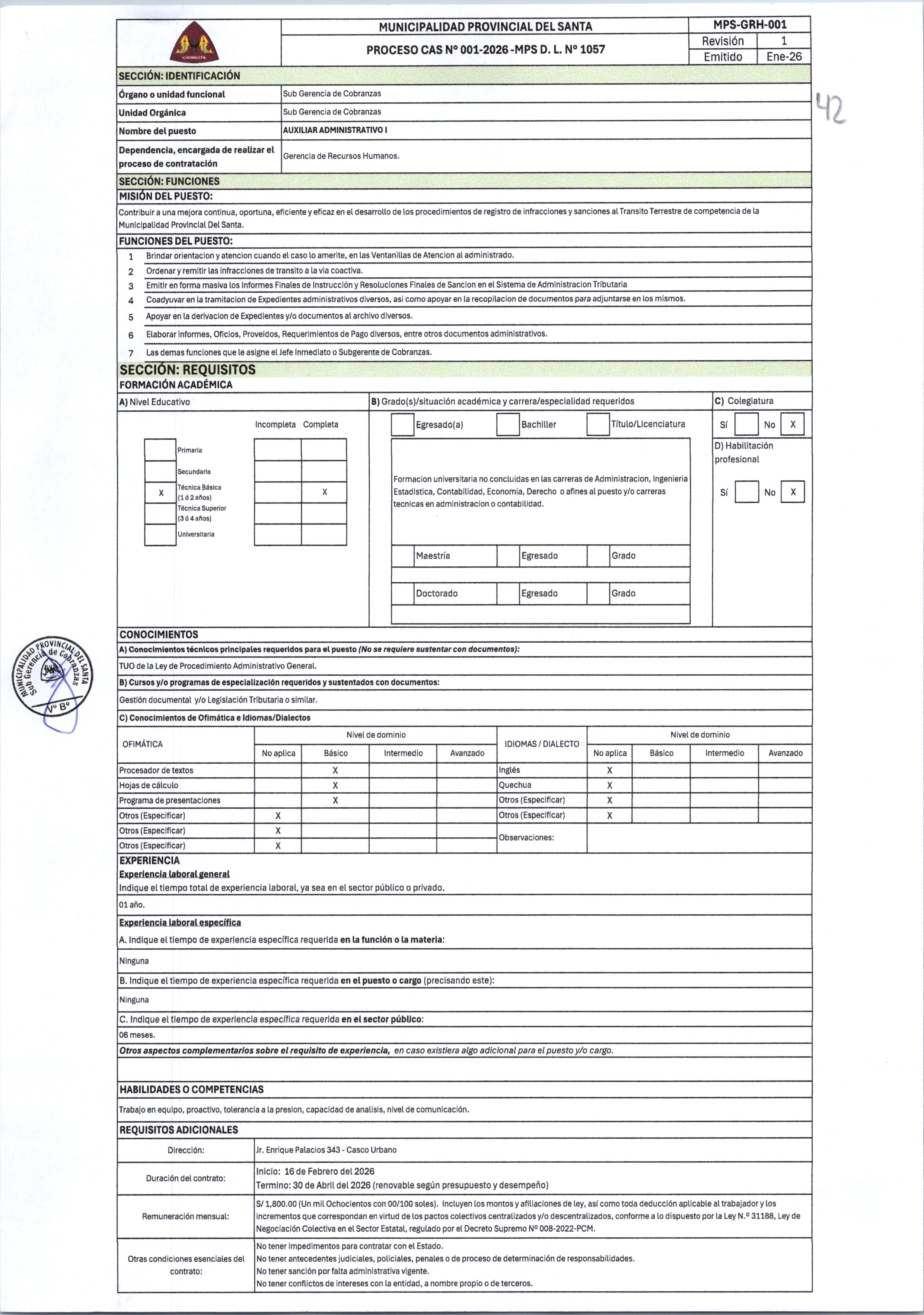 | 42 | PROCESO CAS N° 001-2026-MPS AUXILIAR ADMINISTRATIVO I |