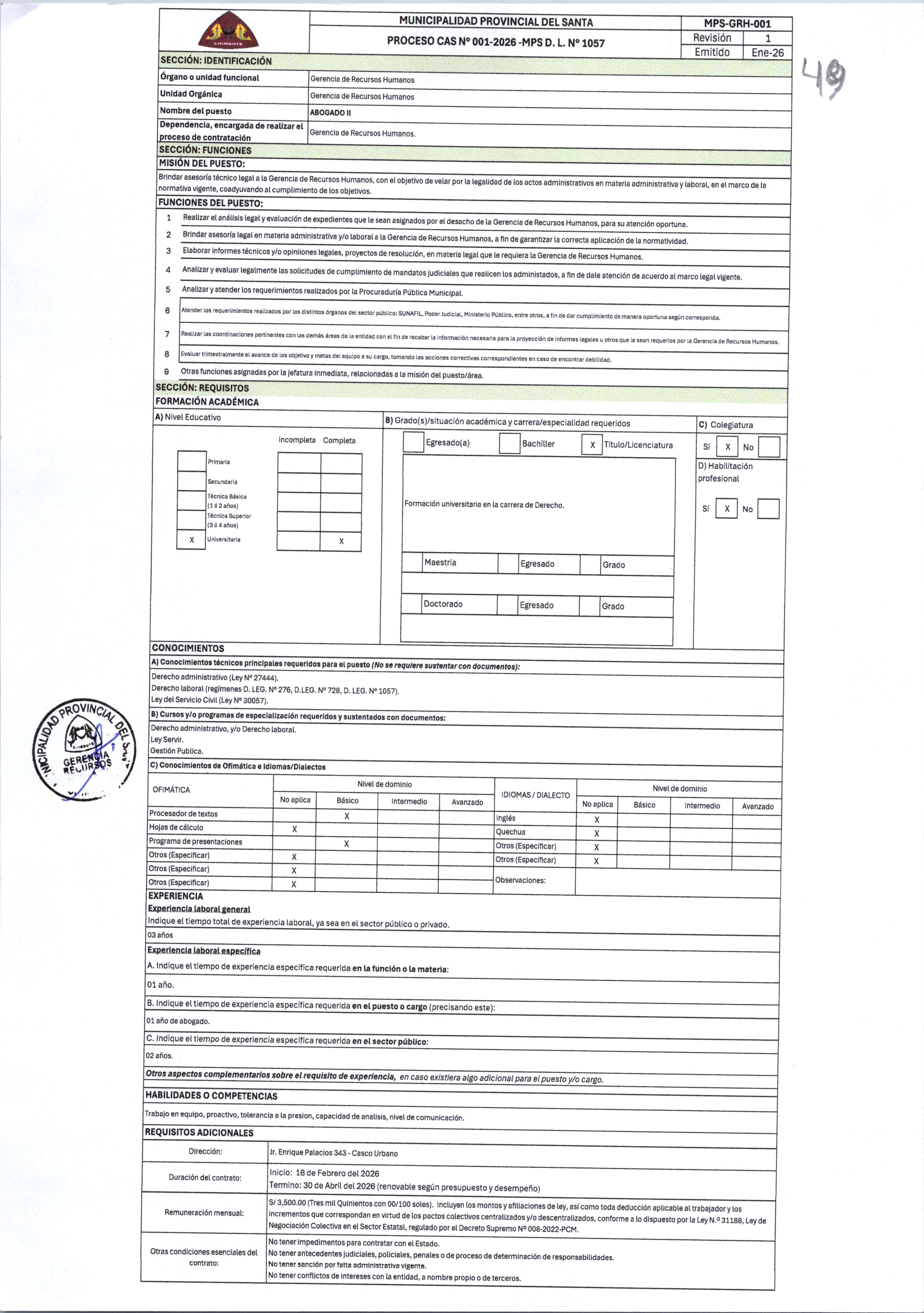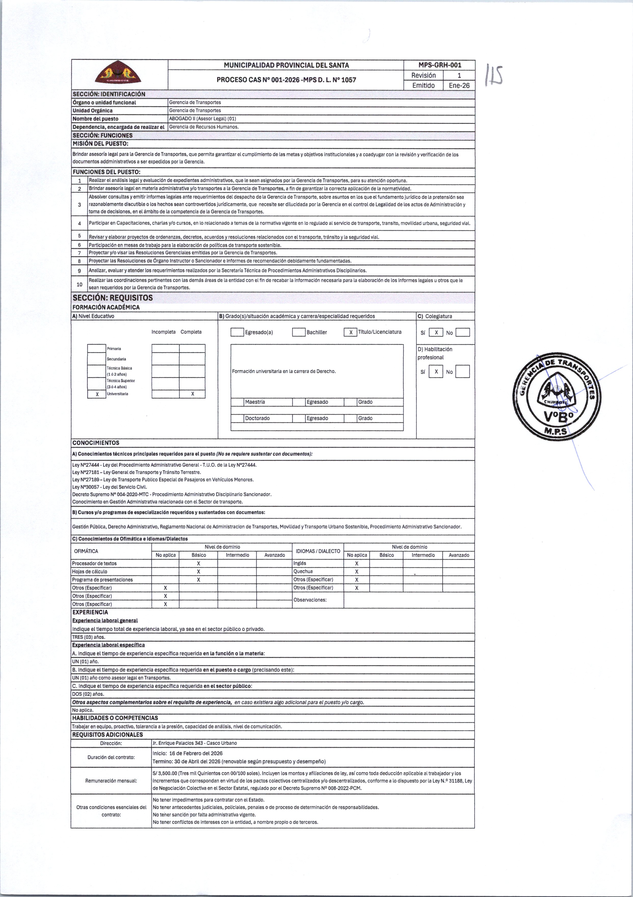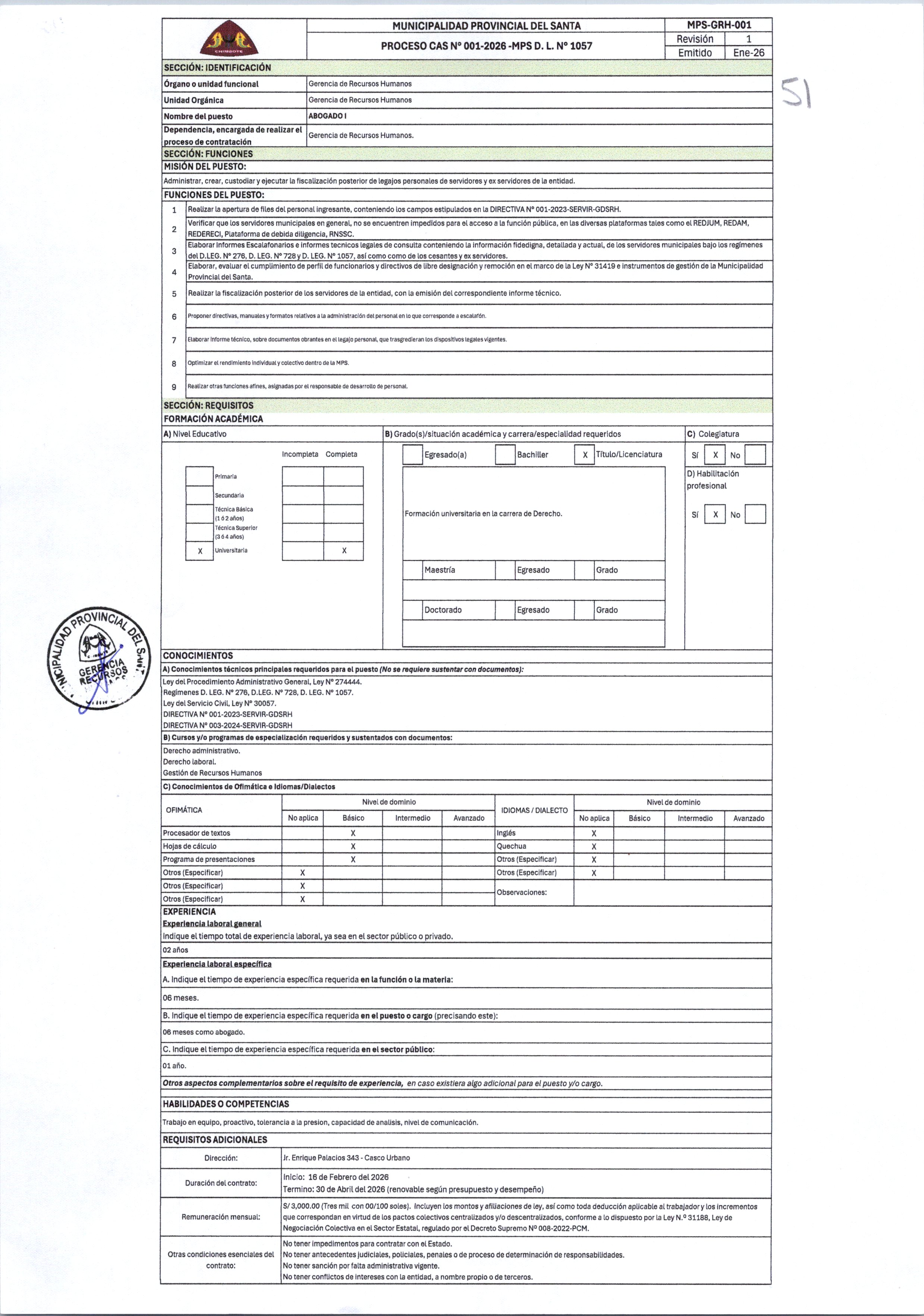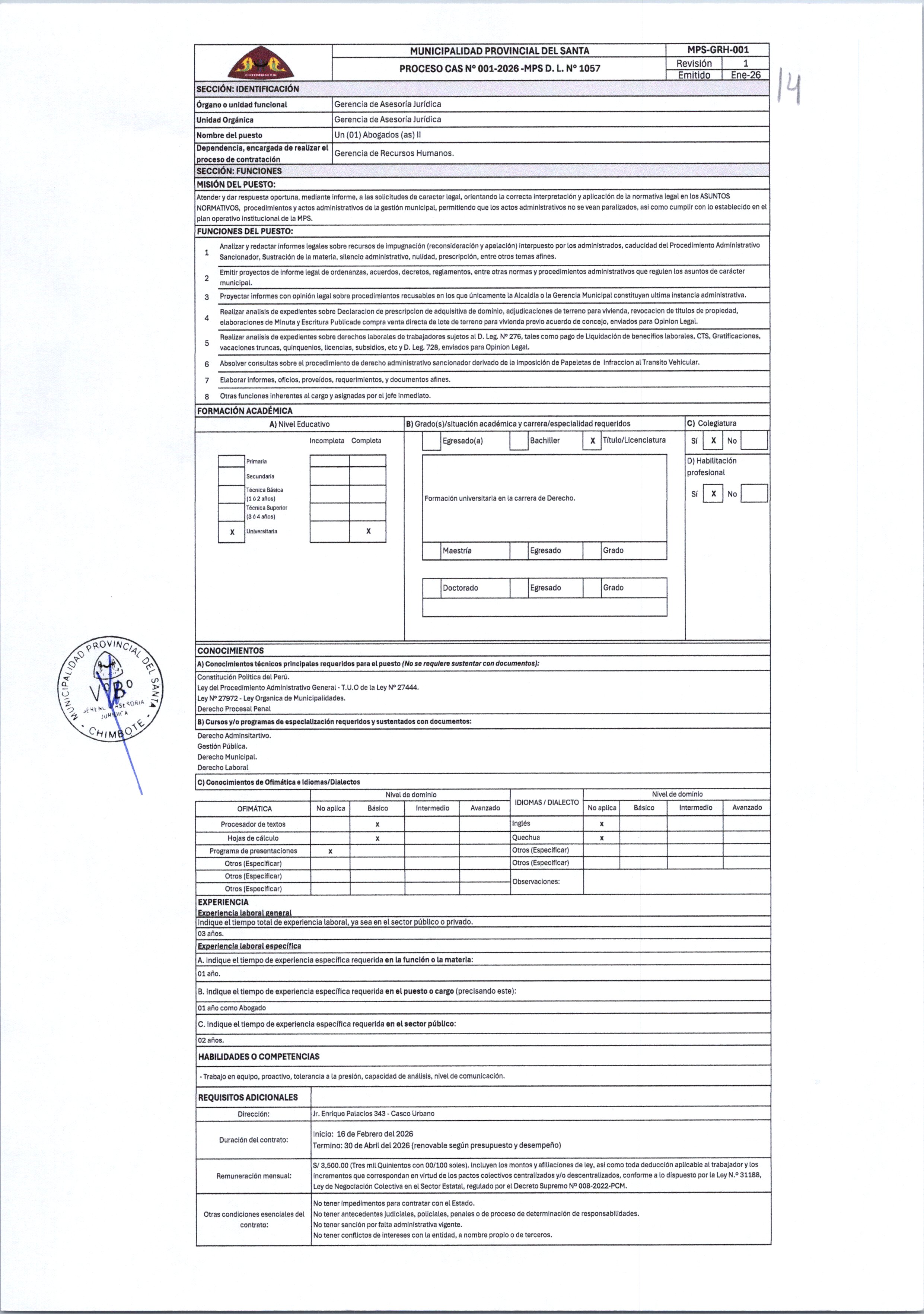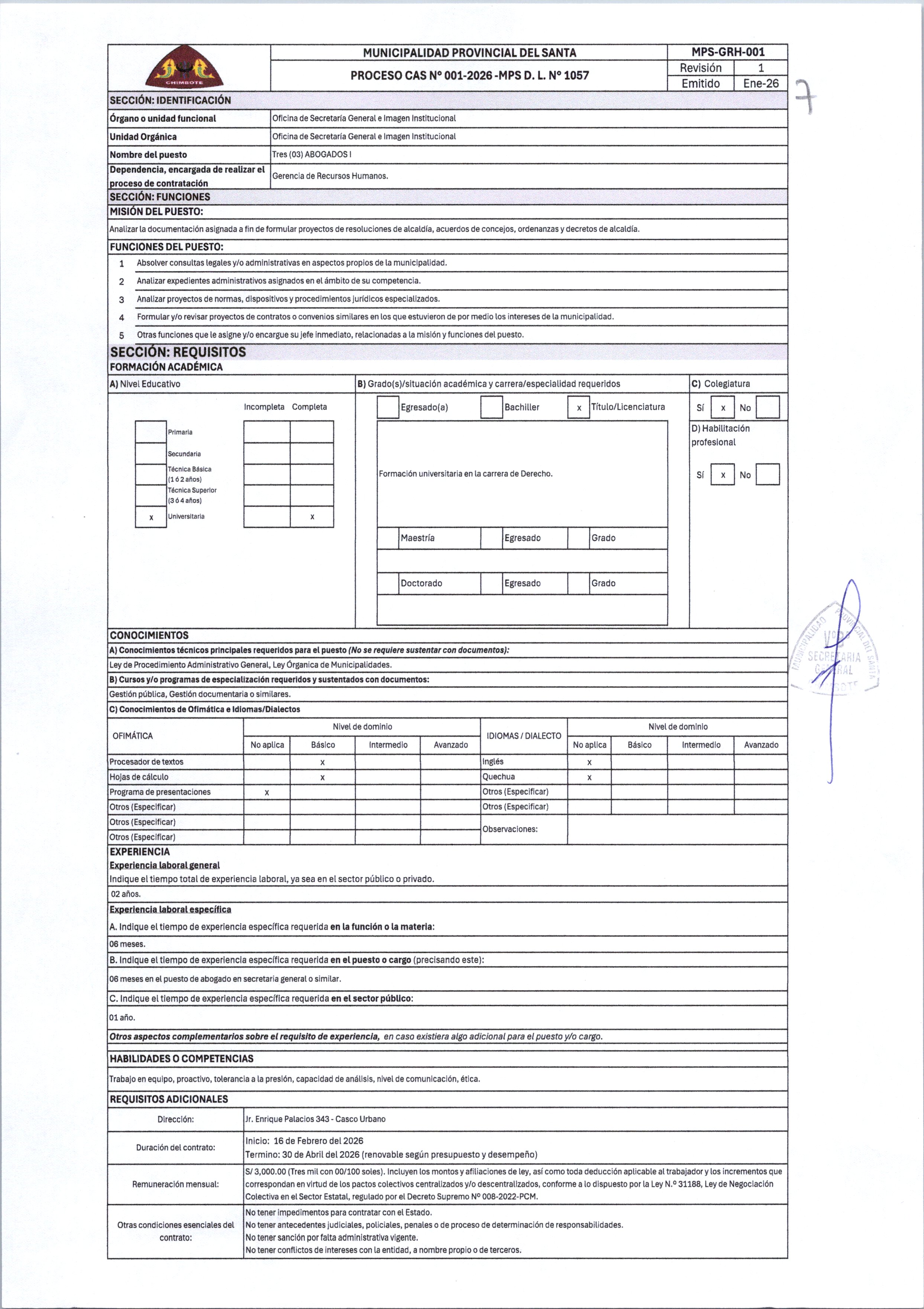 | 34 | PROCESO CAS N° 001-2026-MPS ABOGADO II |