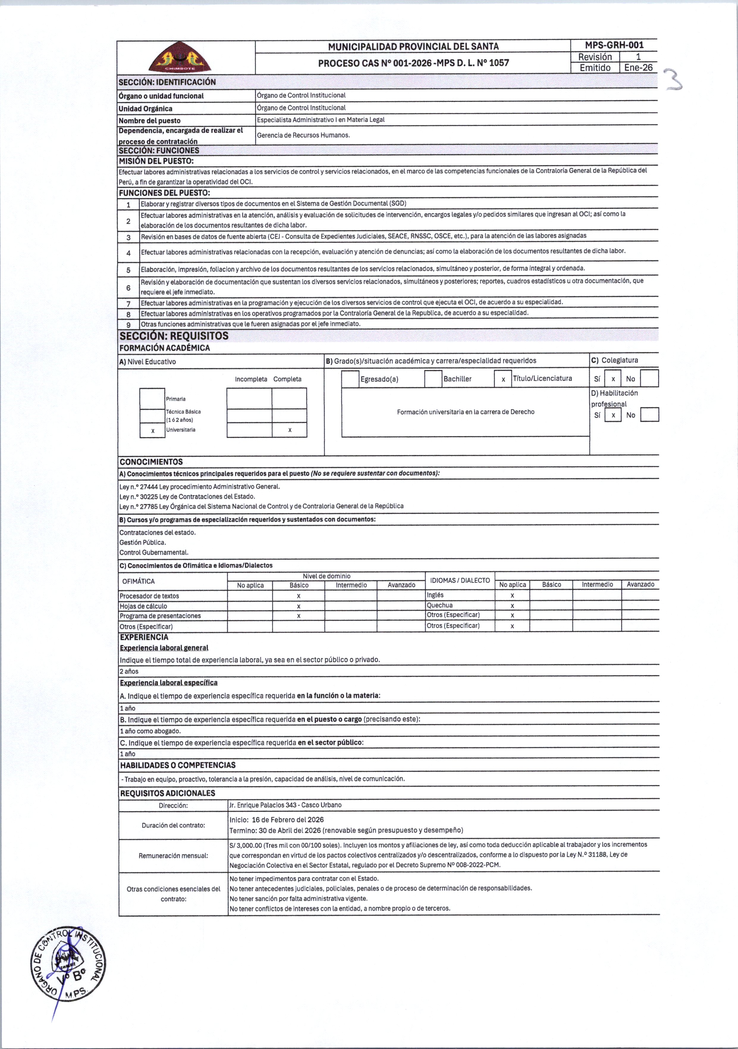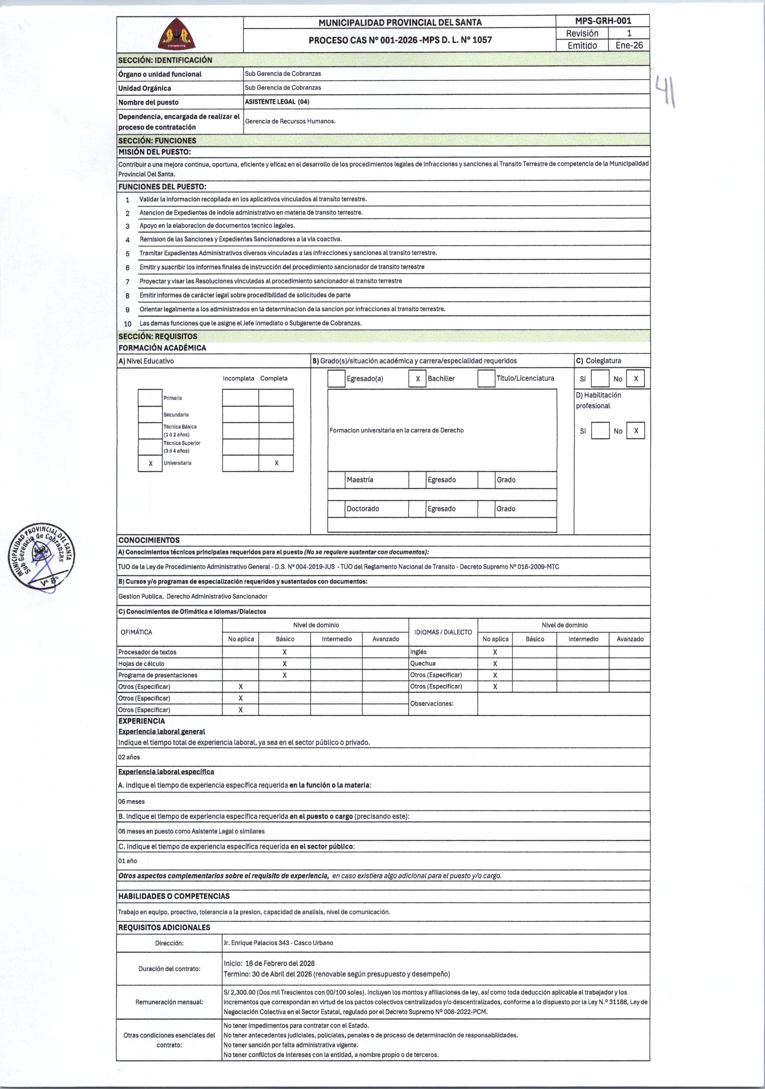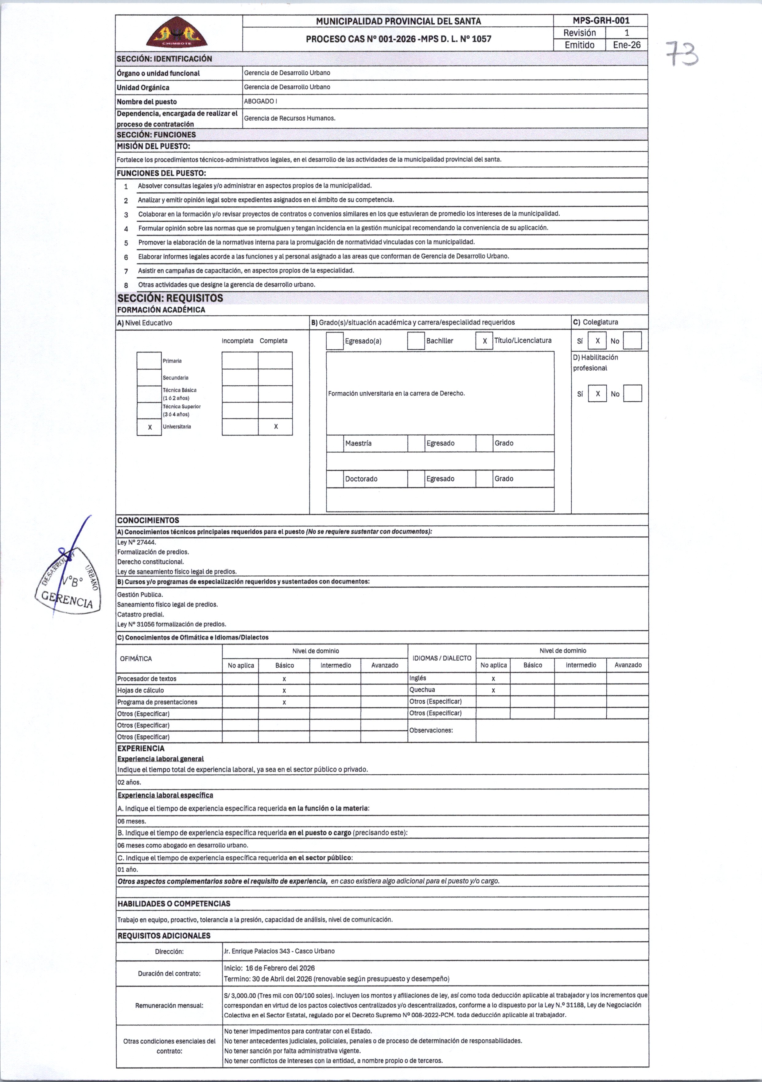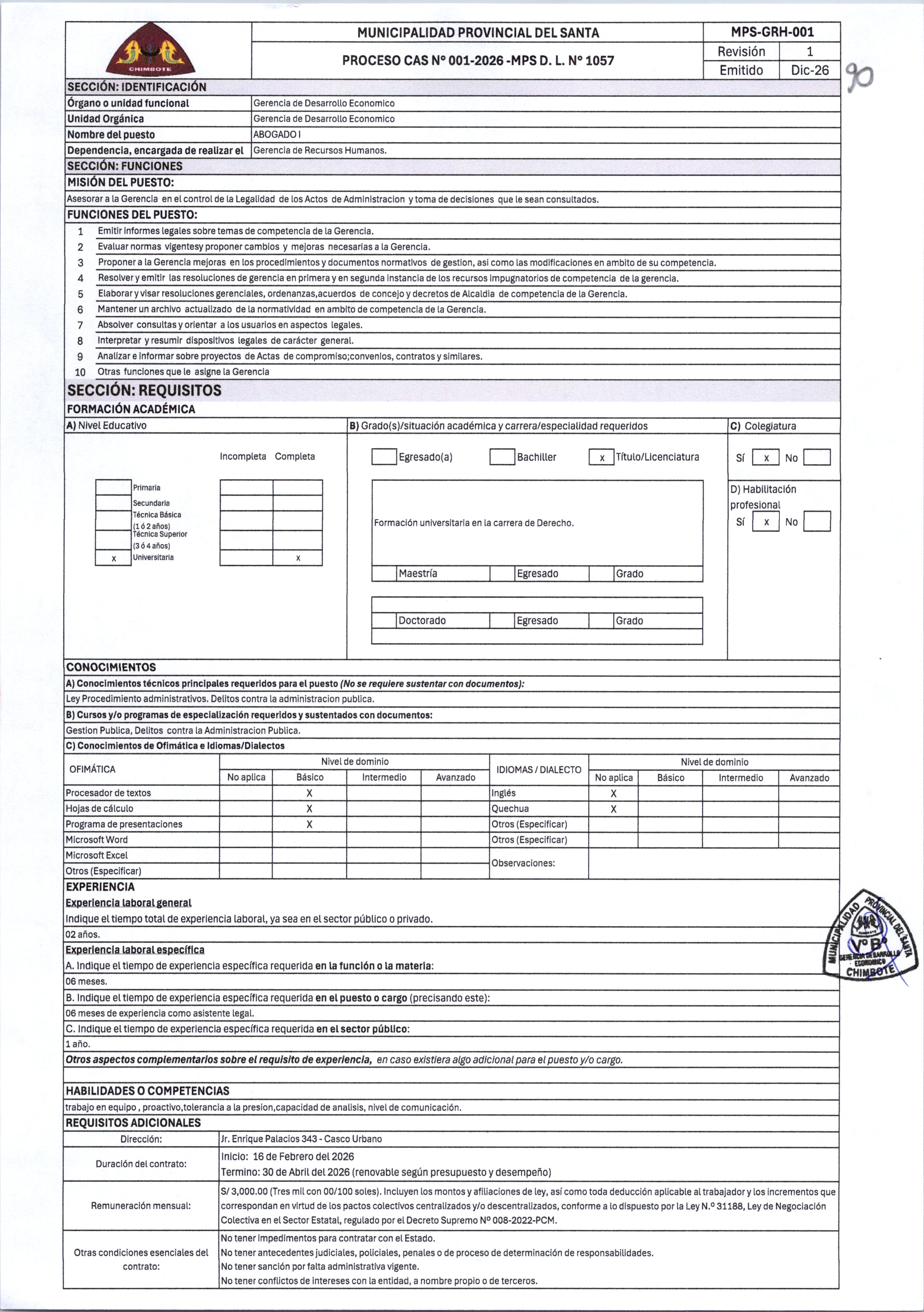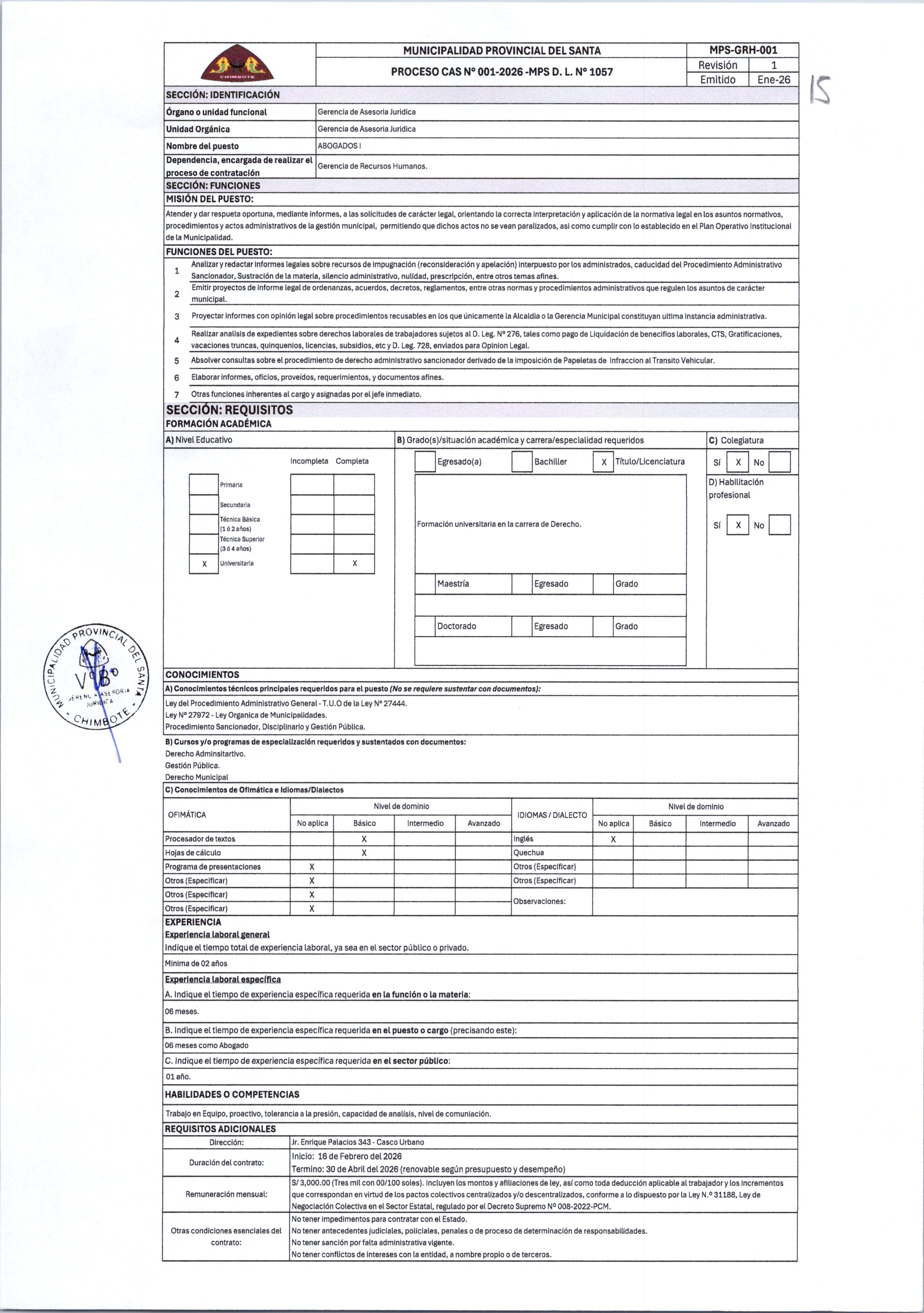 | 34 | PROCESO CAS N° 001-2026-MPS ABOGADO II |