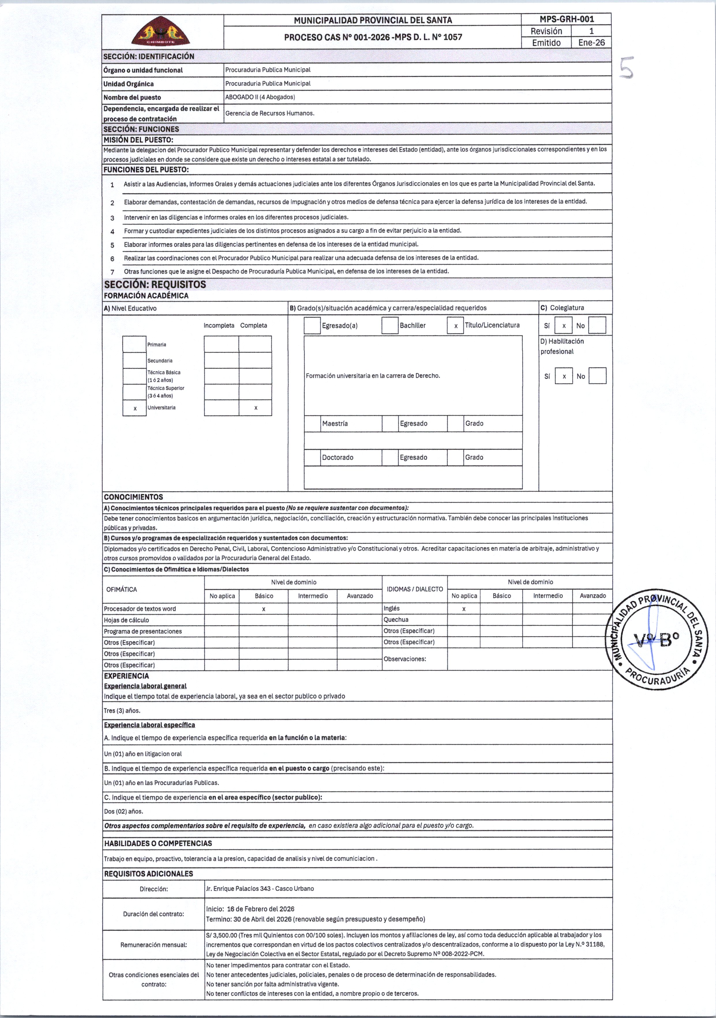 | 5 | PROCESO CAS N° 001-2026-MPS ABOGADO II |