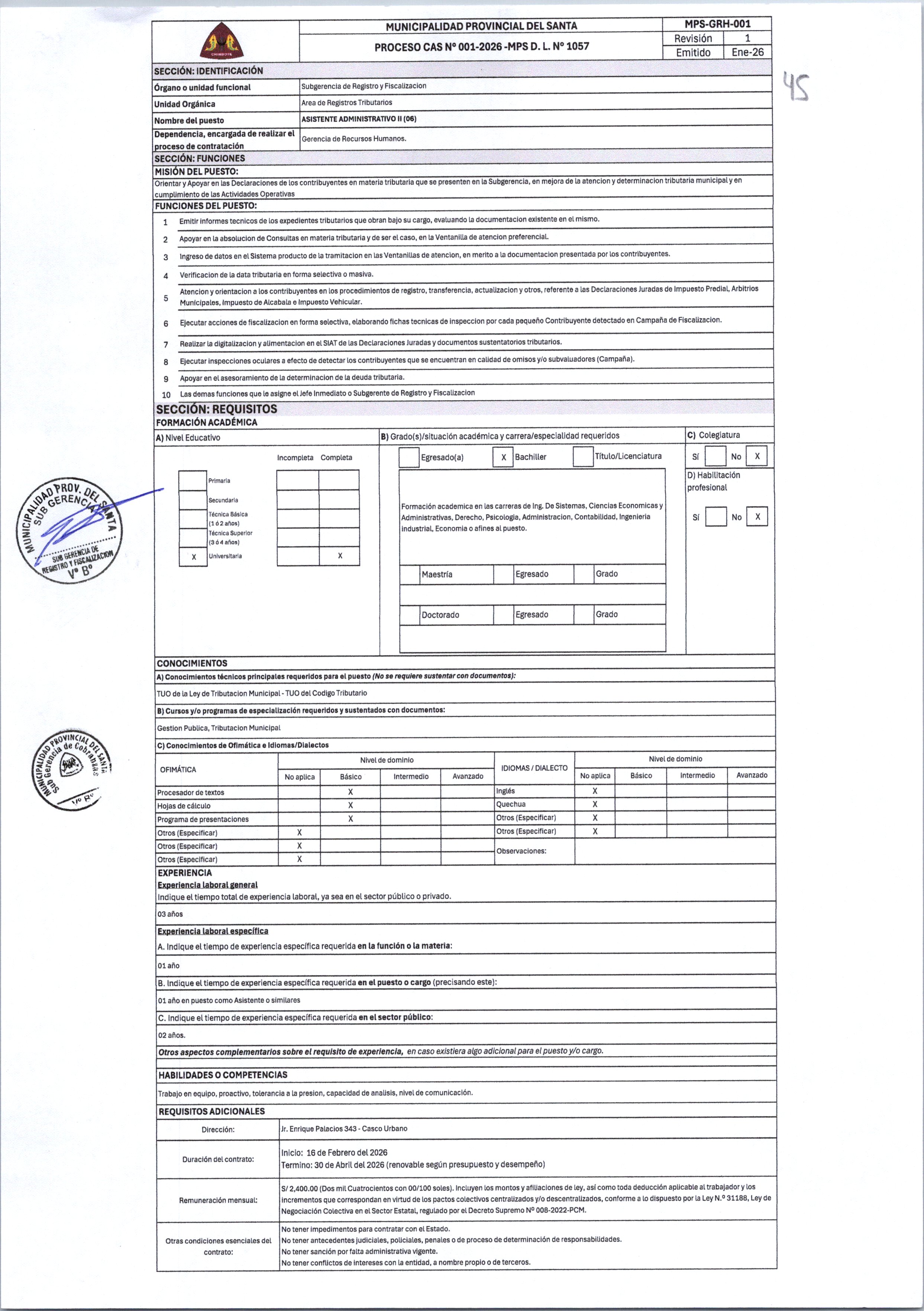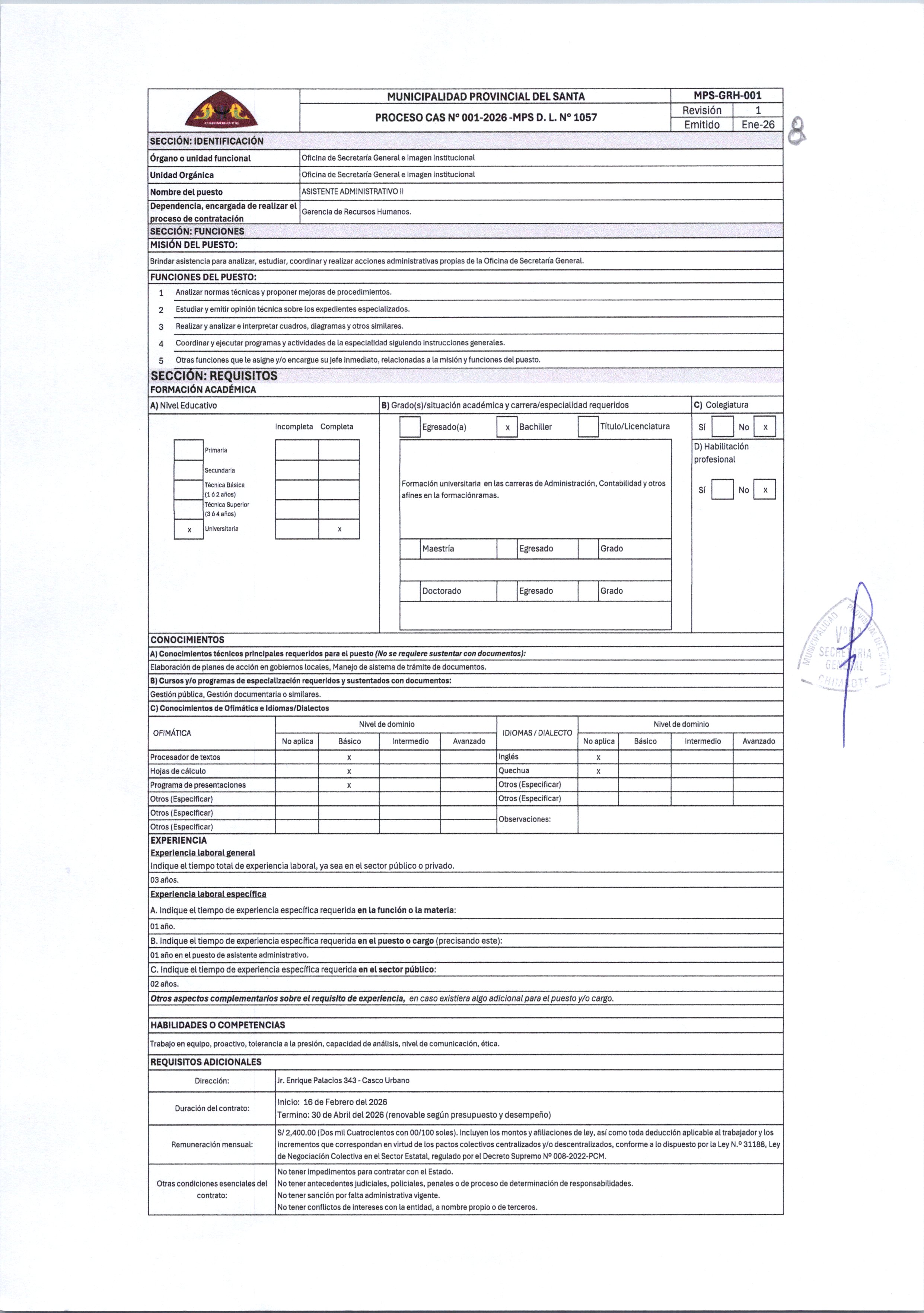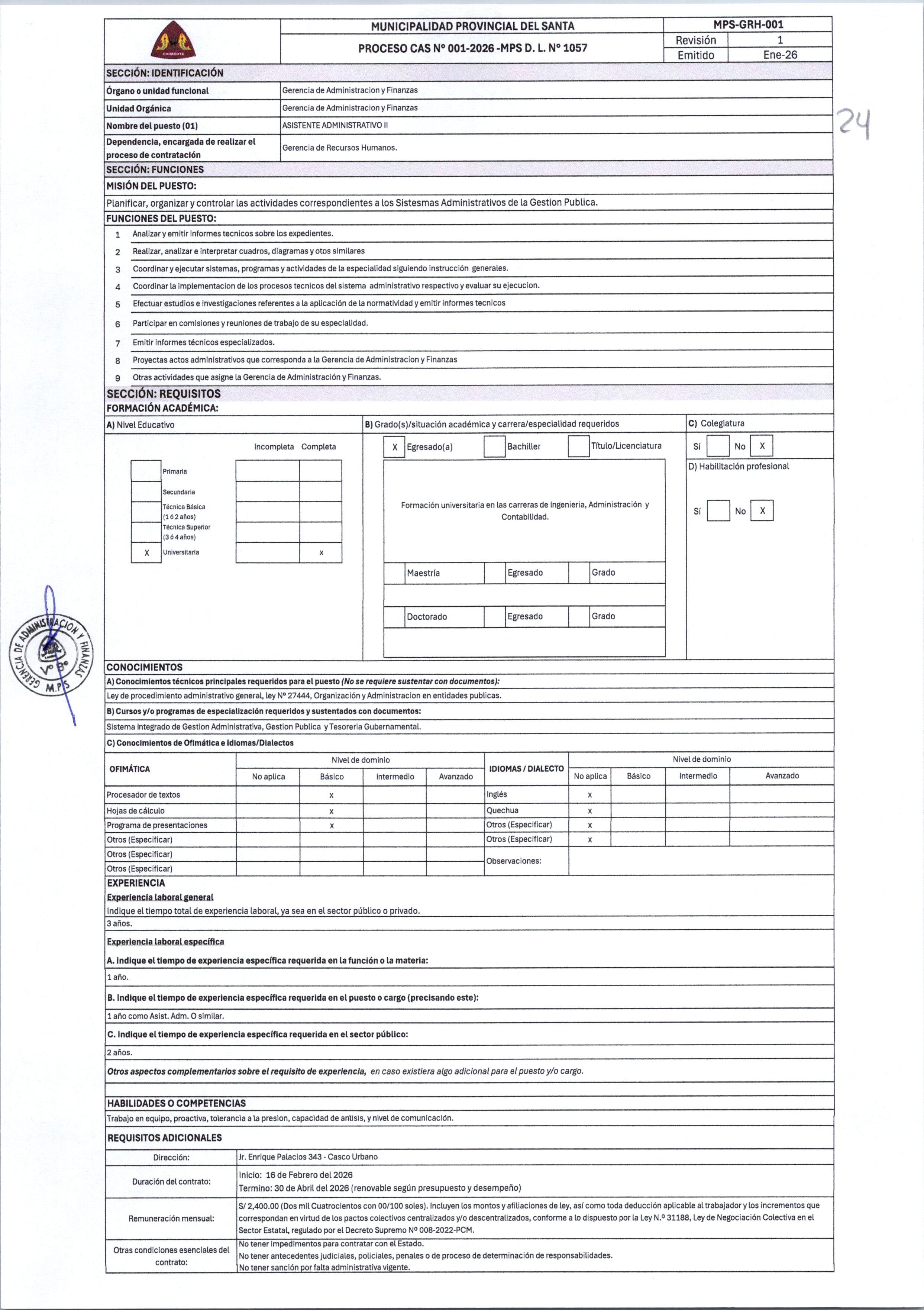 | 24 | PROCESO CAS N° 001-2026-MPS ASISTENTE ADMINISTRATIVO II |