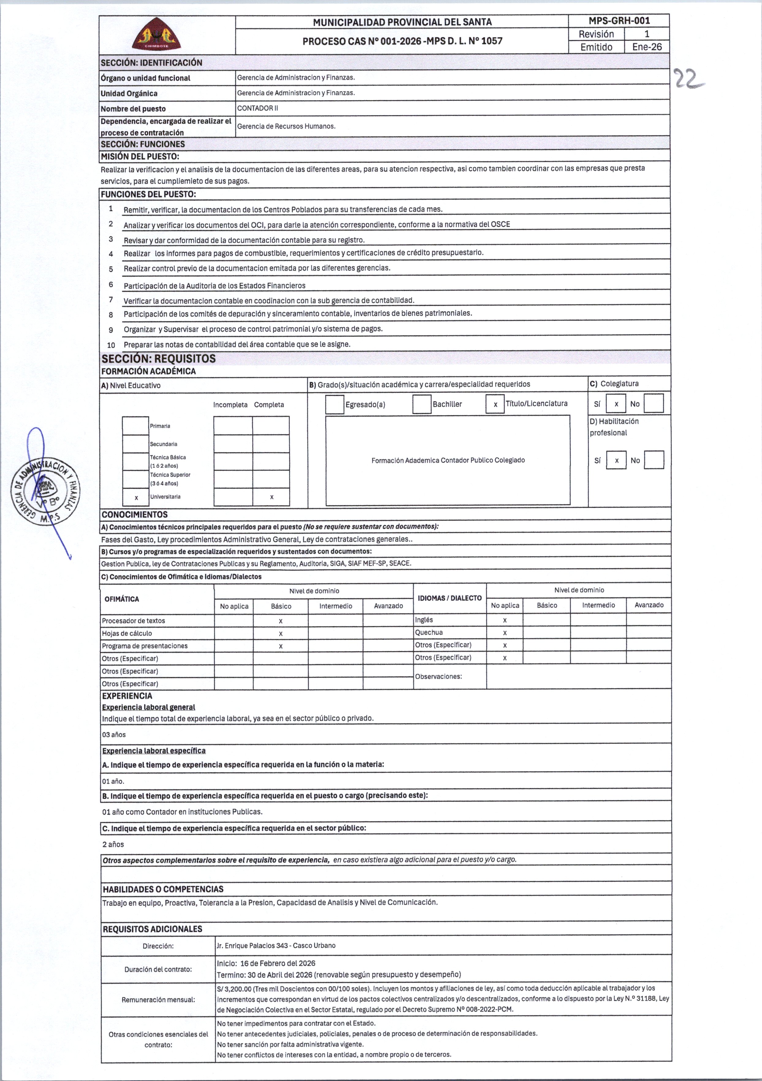 | 22 | PROCESO CAS N° 001-2026-MPS CONTADOR II |