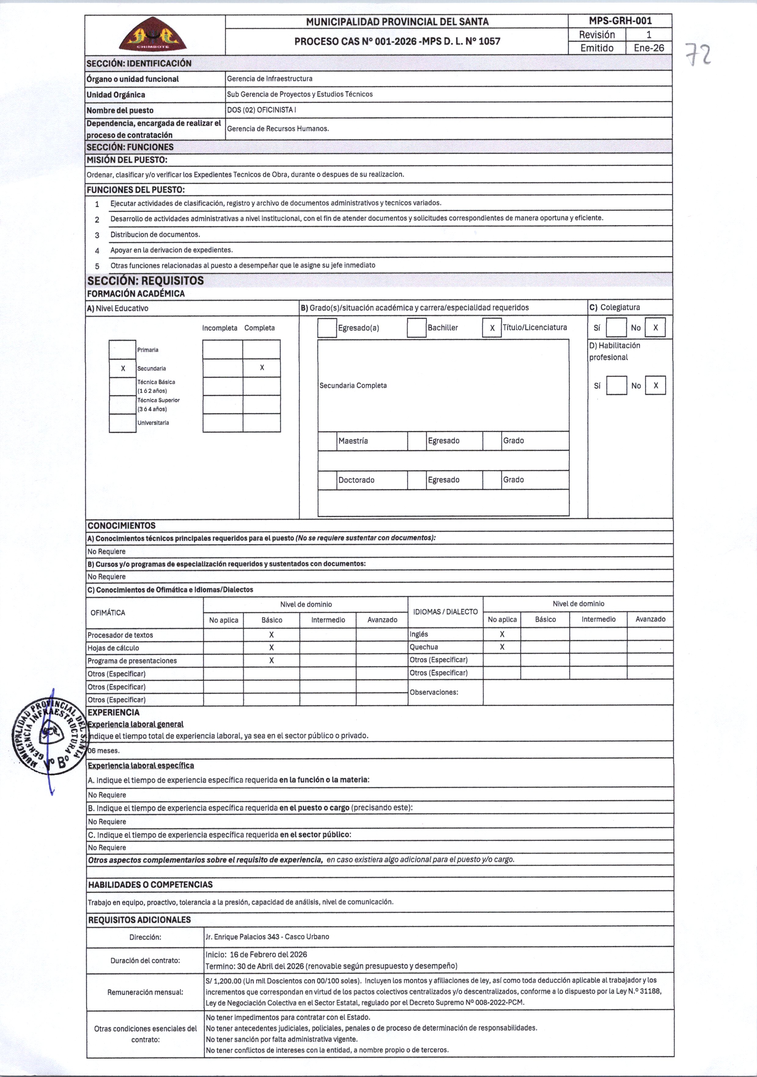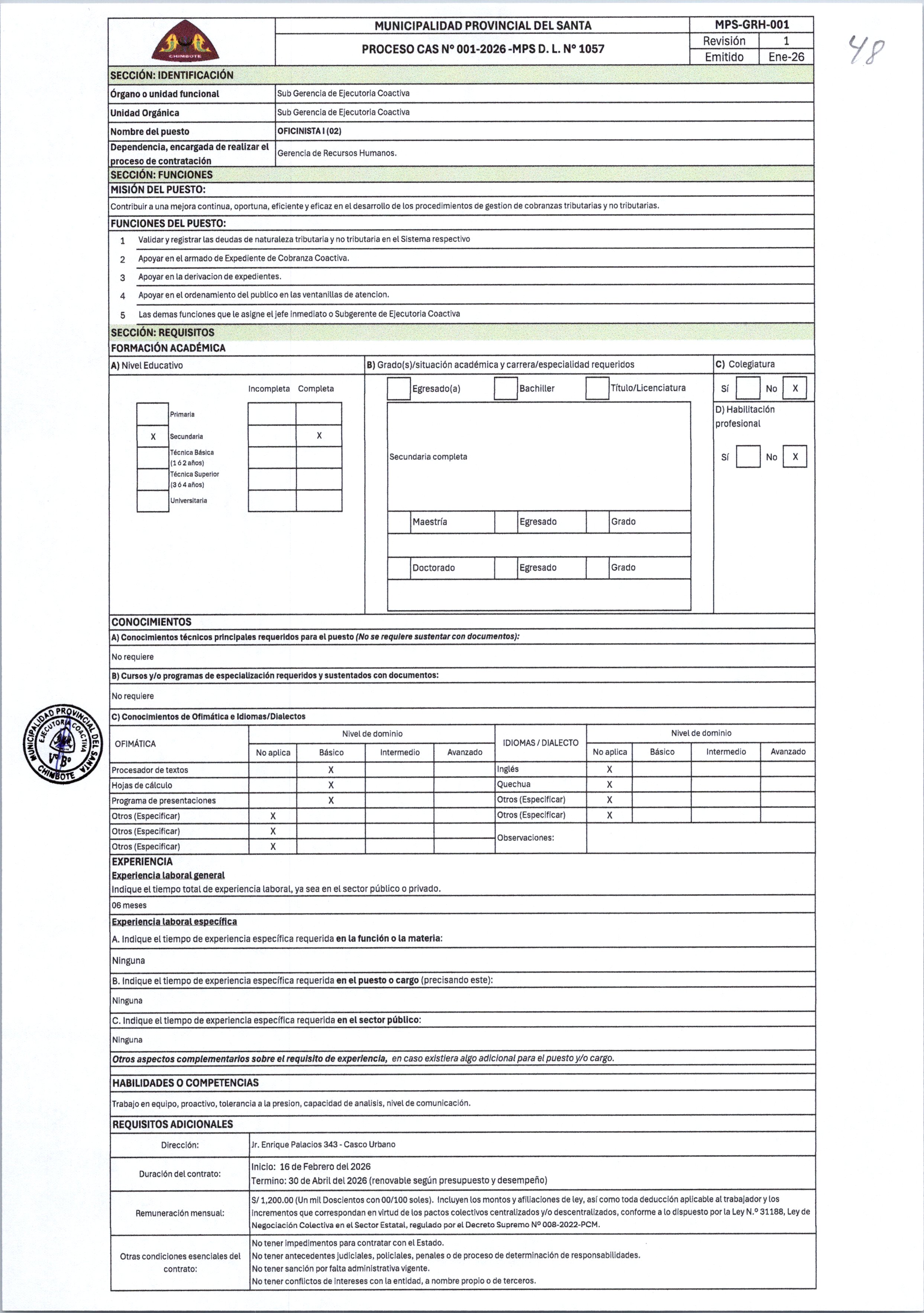 | 48 | PROCESO CAS N° 001-2026-MPS OFICINISTA I |