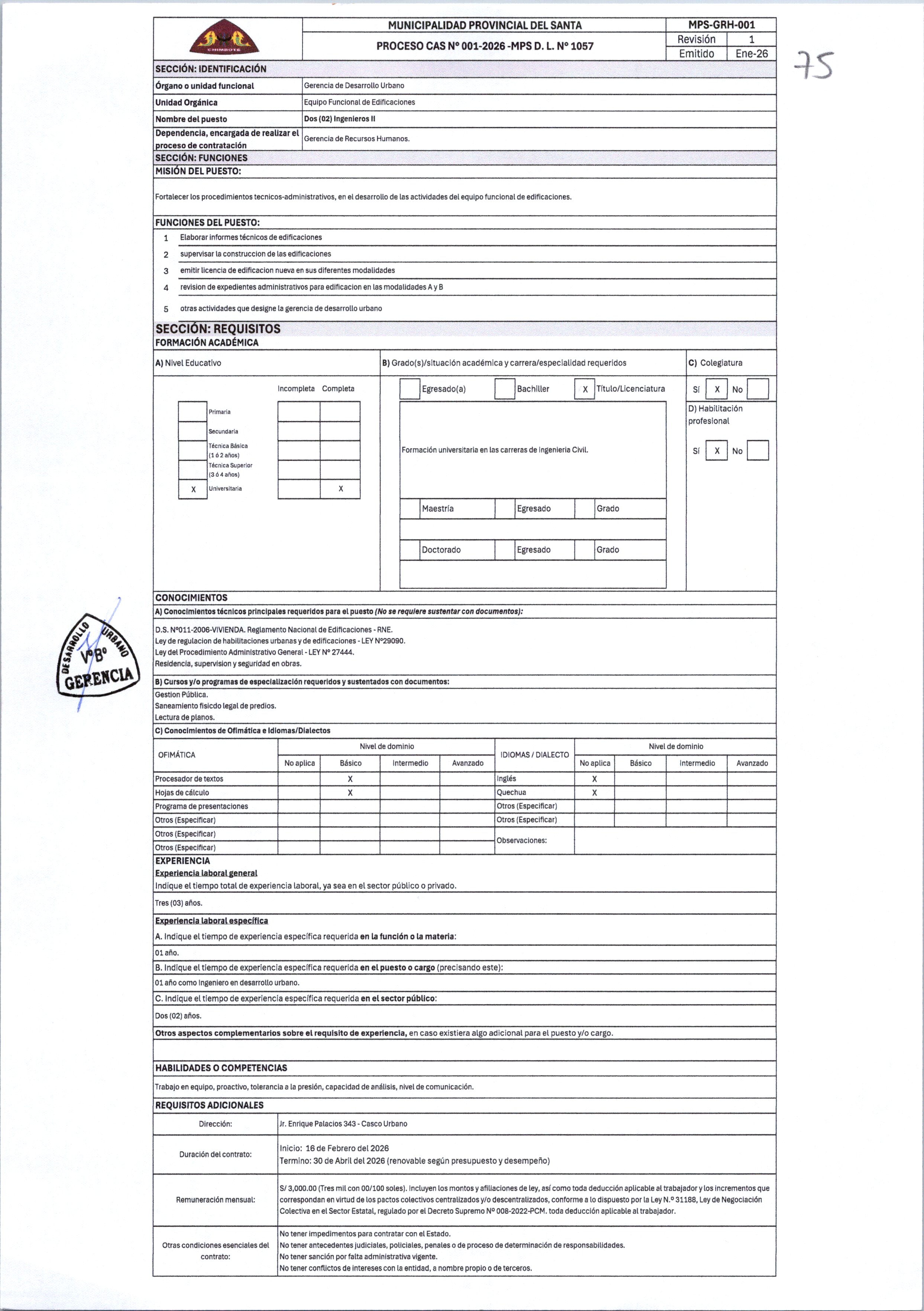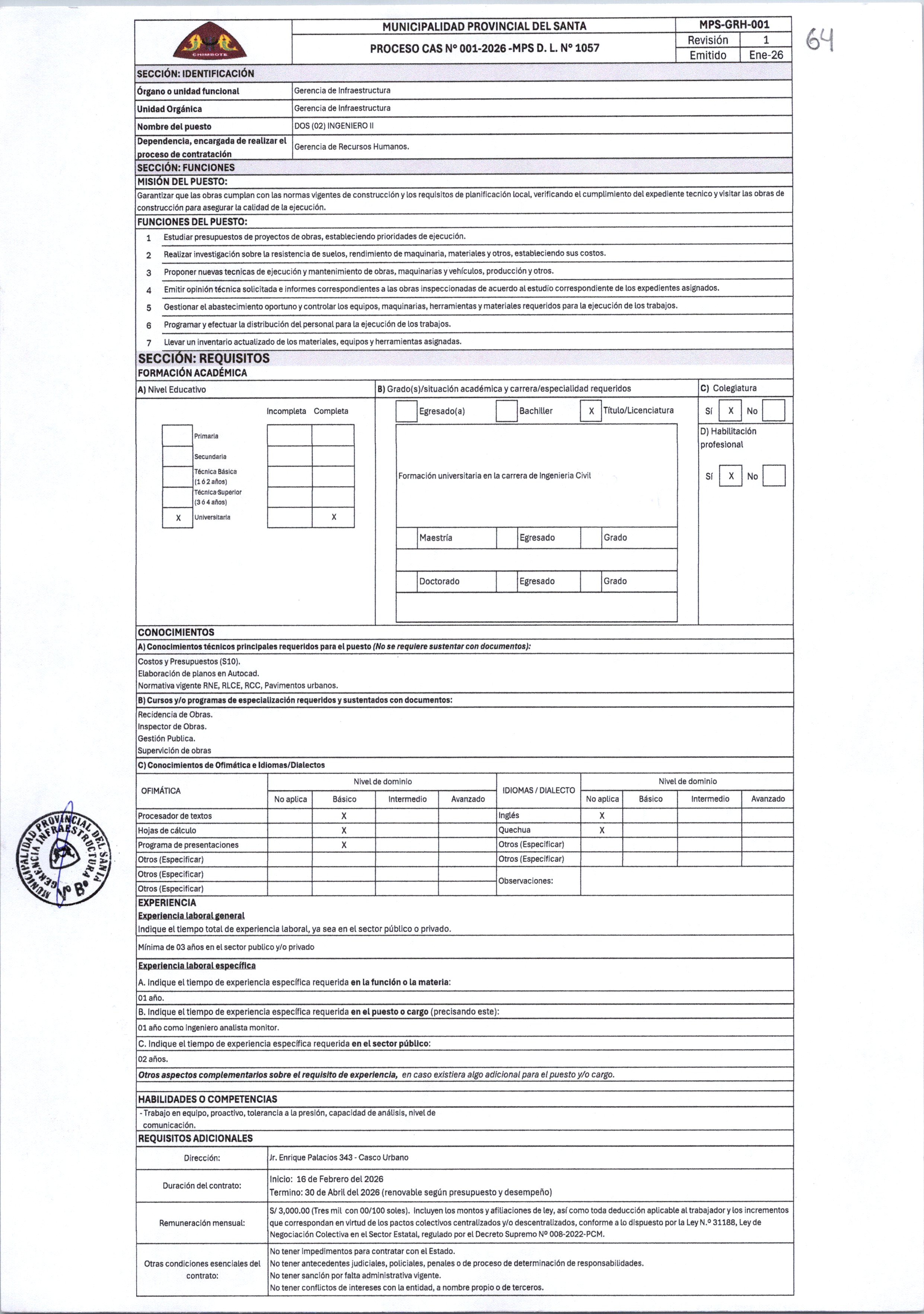 | 64 | PROCESO CAS N° 001-2026-MPS INGENIERO II |