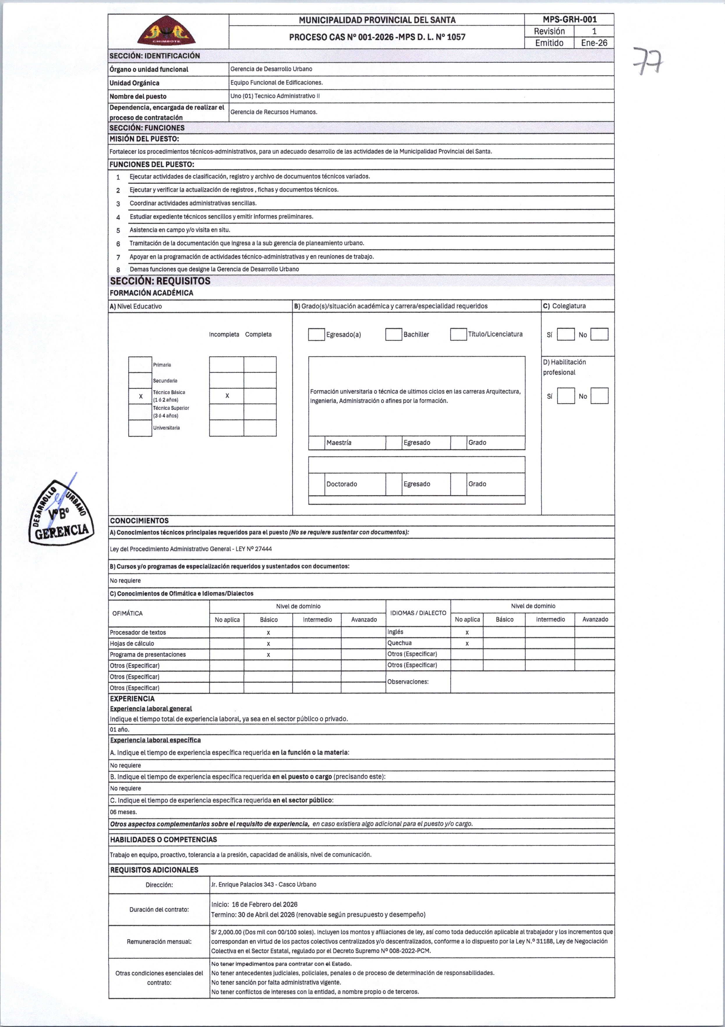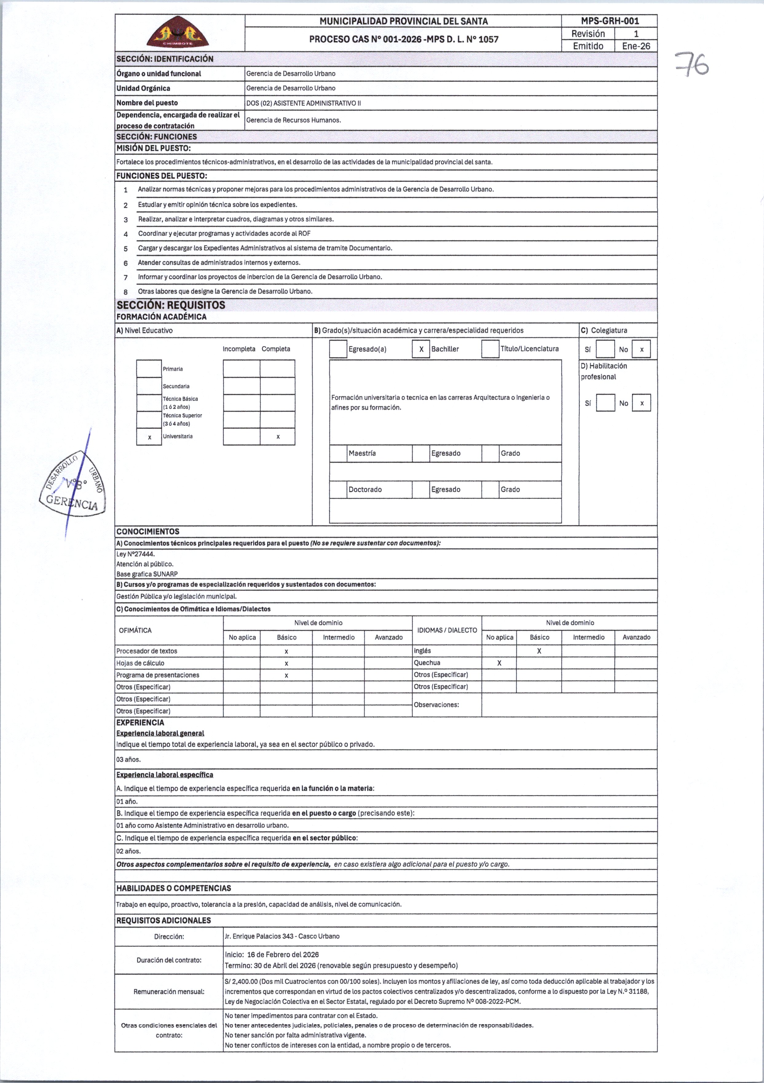 | 77 | PROCESO CAS N° 001-2026-MPS TECNICO ADMINISTRATIVO II |