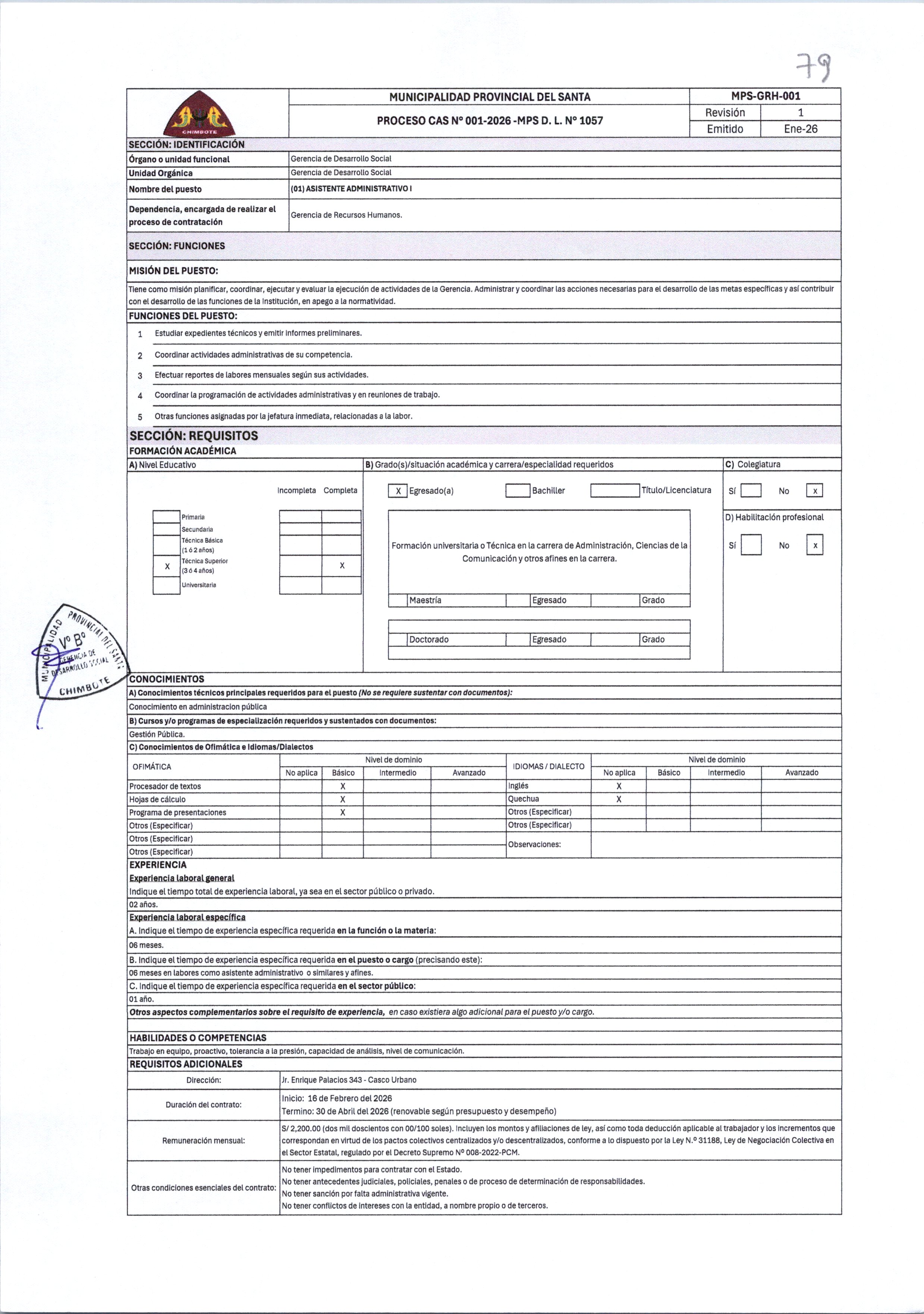 | 79 | PROCESO CAS N° 001-2026-MPS ASISTENTE ADMINISTRATIVO I |