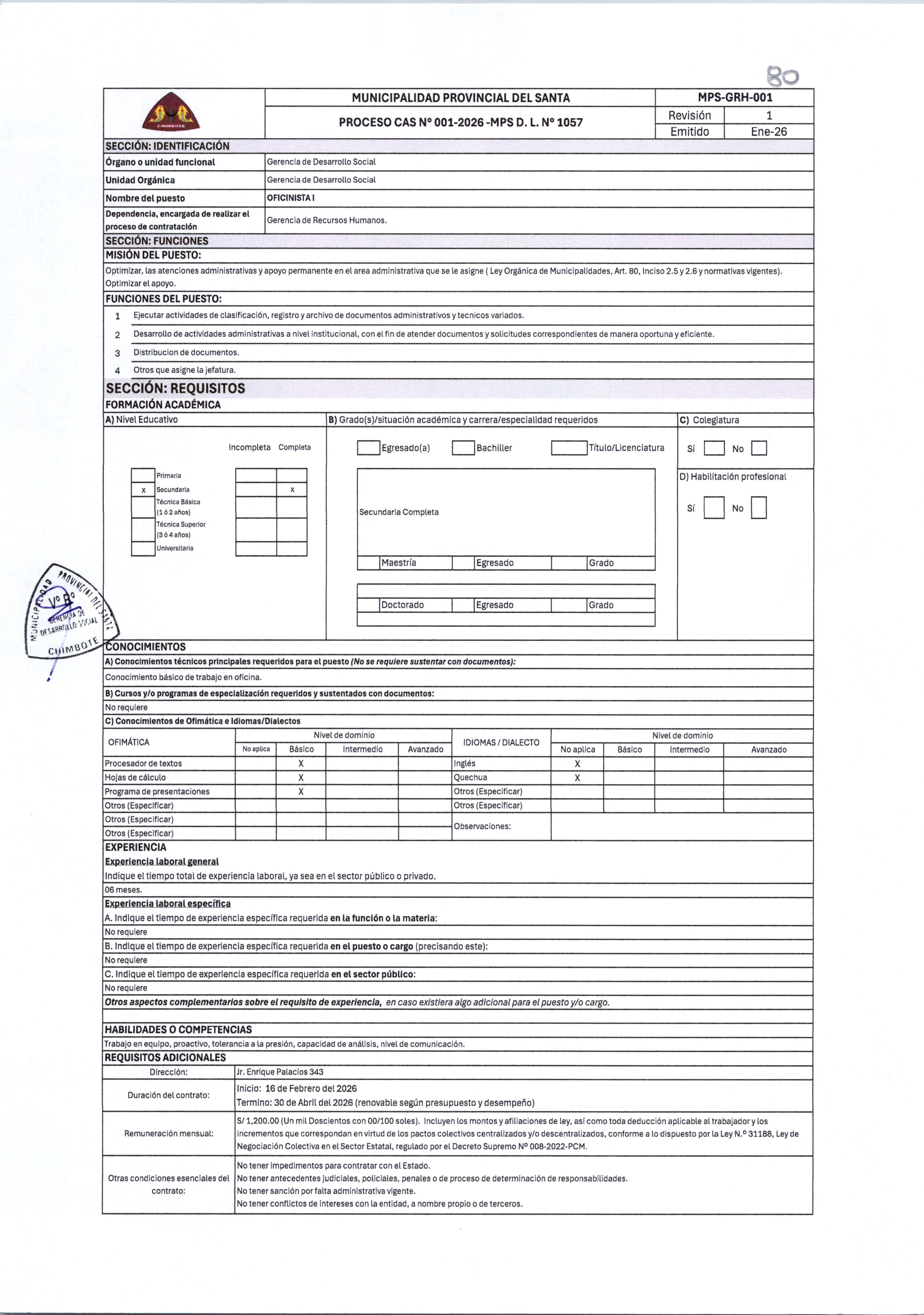 | 80 | PROCESO CAS N° 001-2026-MPS OFICINISTA I |
