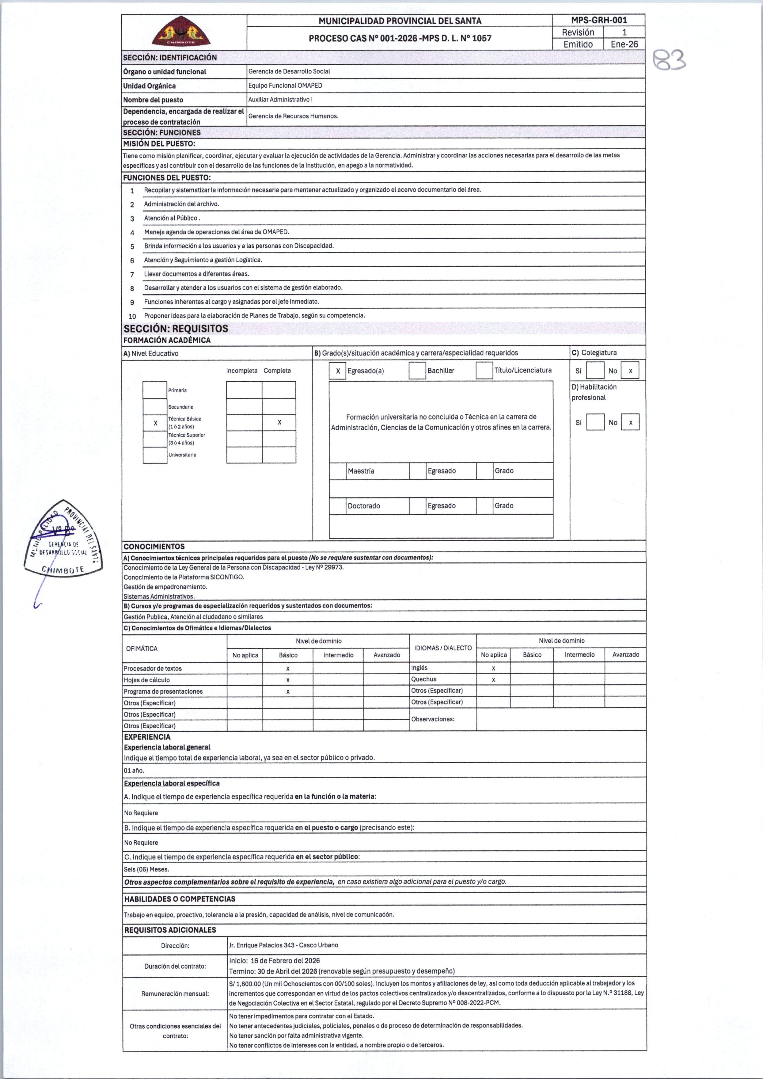 | 83 | PROCESO CAS N° 001-2026-MPS AUXILIAR ADMINISTRATIVO I |