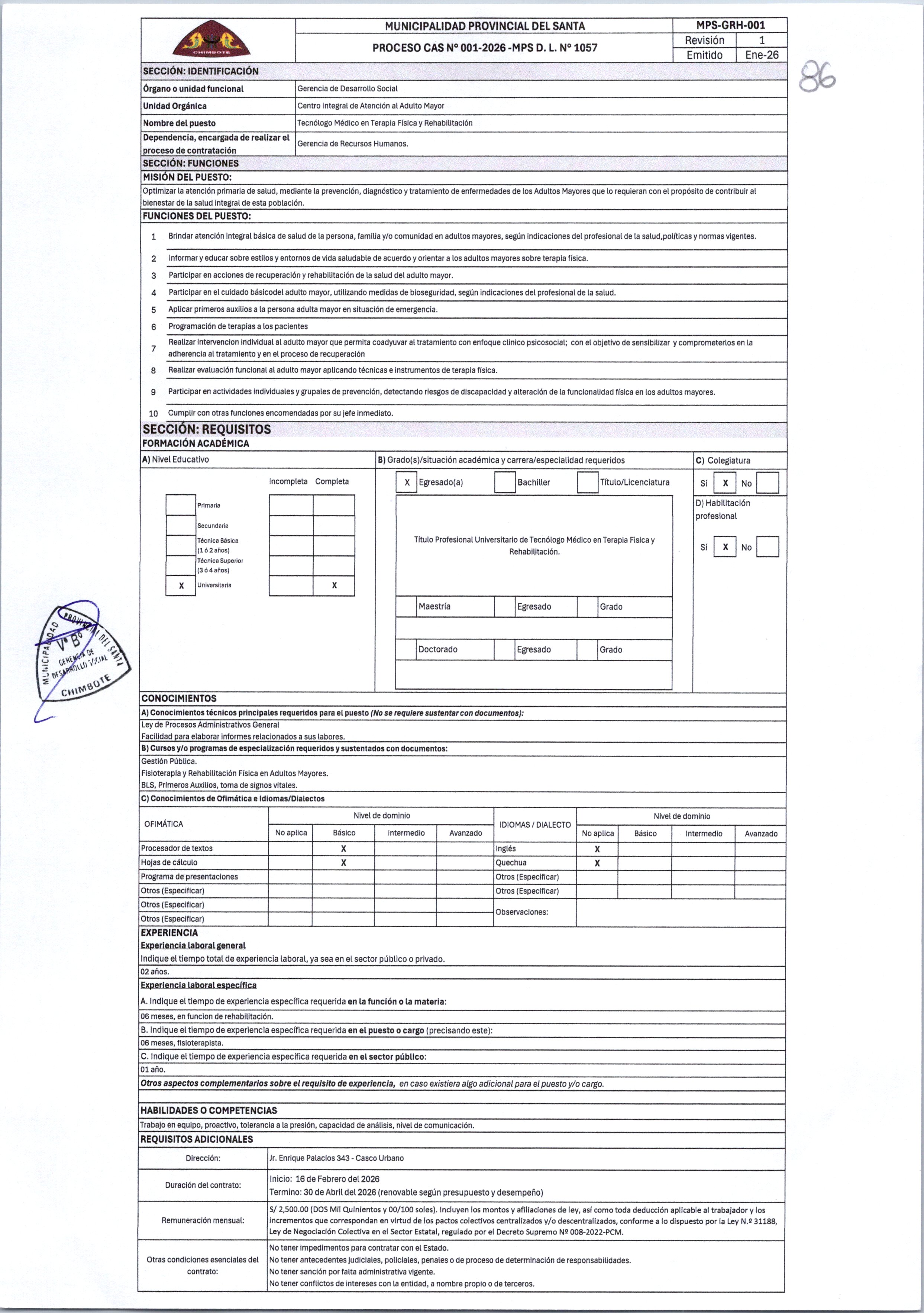 | 86 | PROCESO CAS N° 001-2026-MPS TÉCNOLOGO MÉDICO EN TERAPIA FÍSICA Y REHABILITACIÓN |