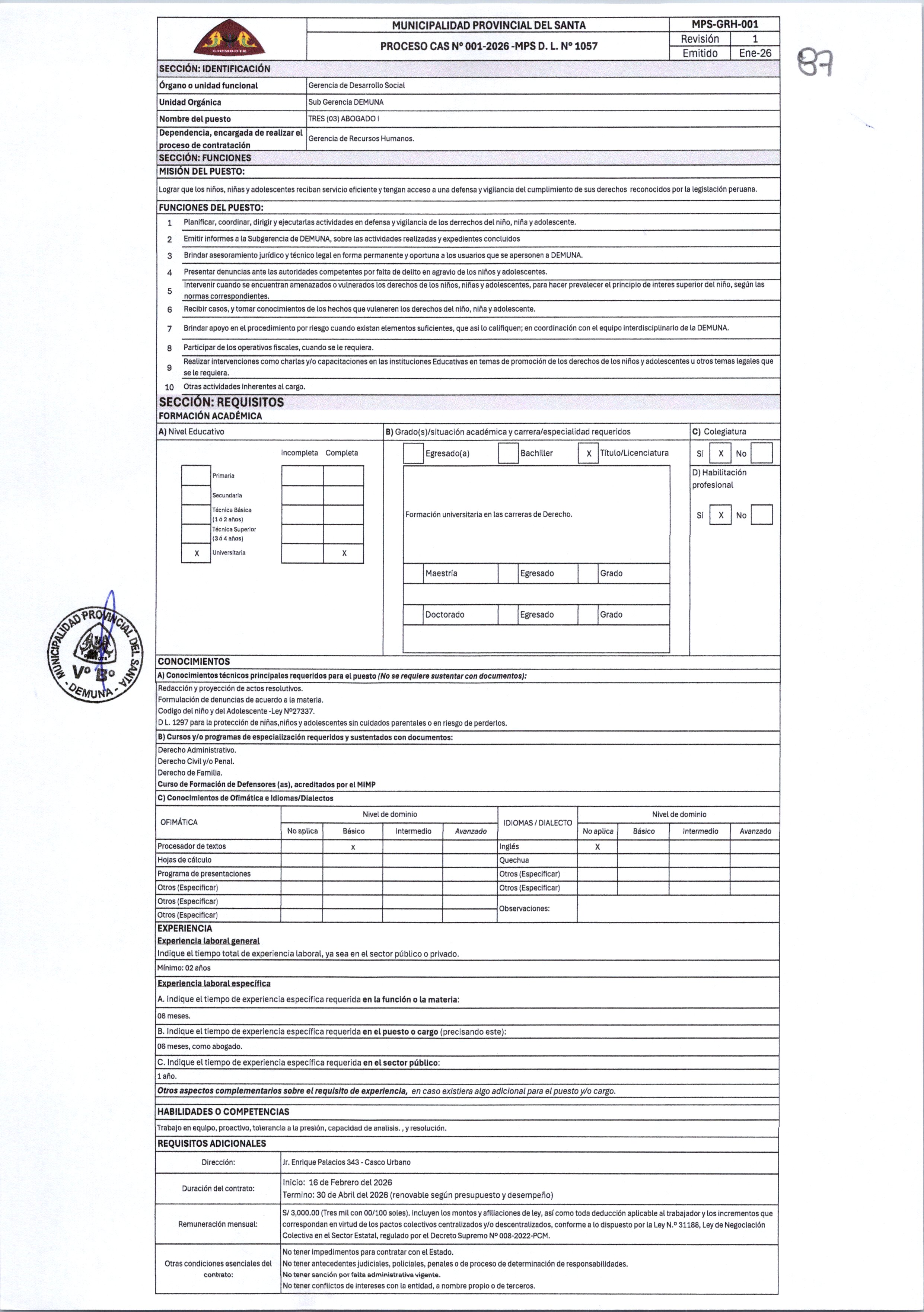 | 90 | PROCESO CAS N° 001-2026-MPS ABOGADO I |