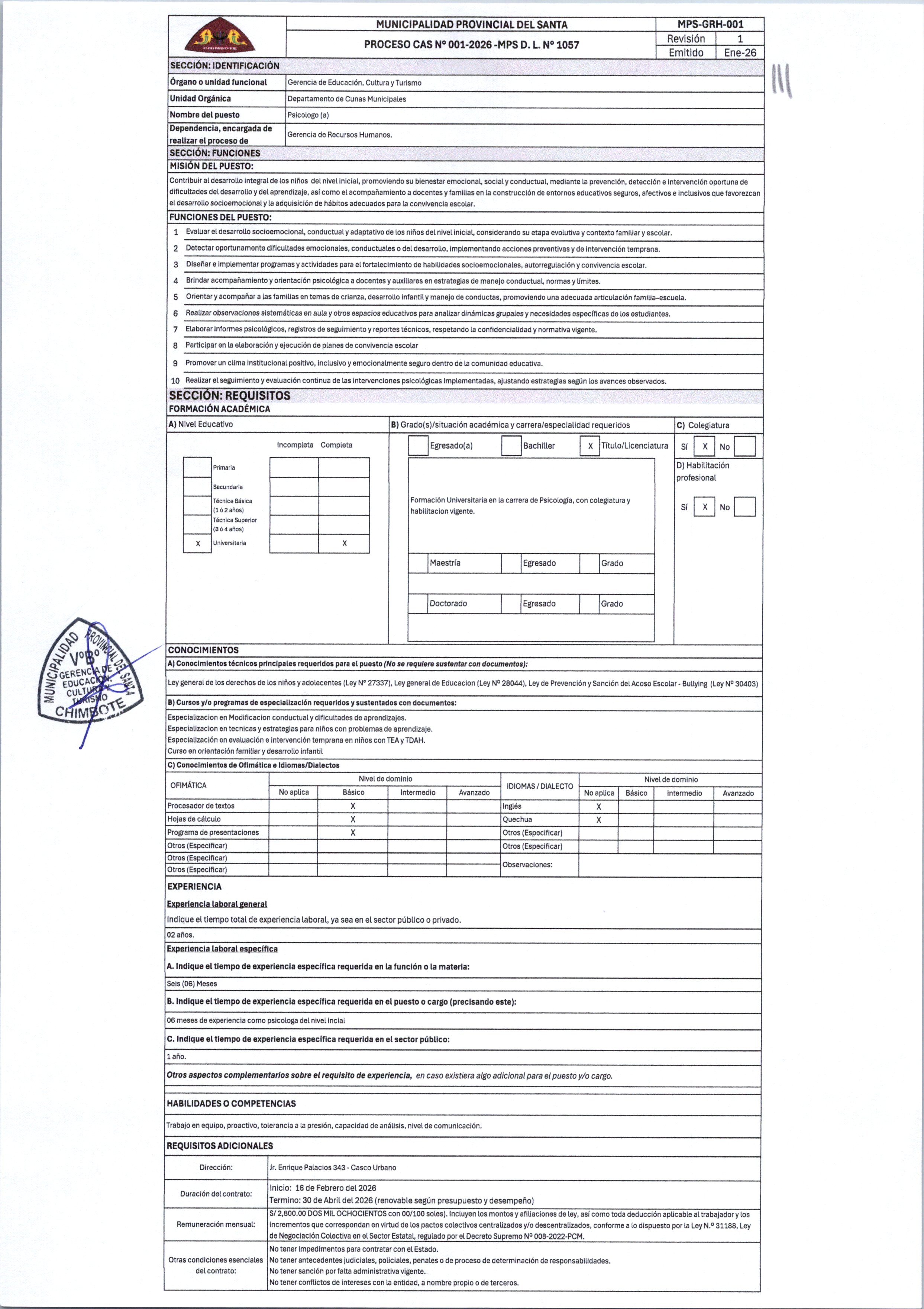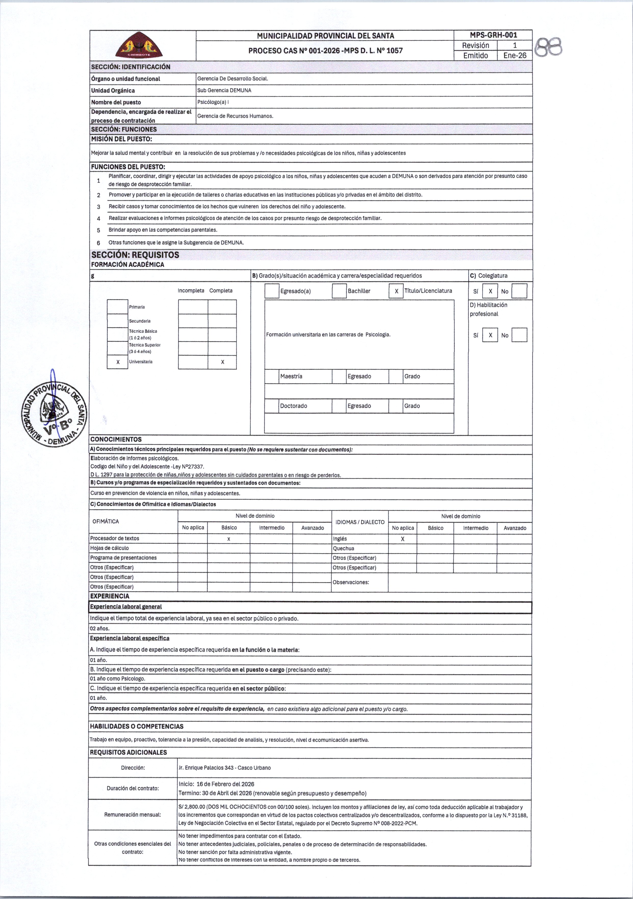 | 88 | PROCESO CAS N° 001-2026-MPS PSICÓLOGO (A) I |