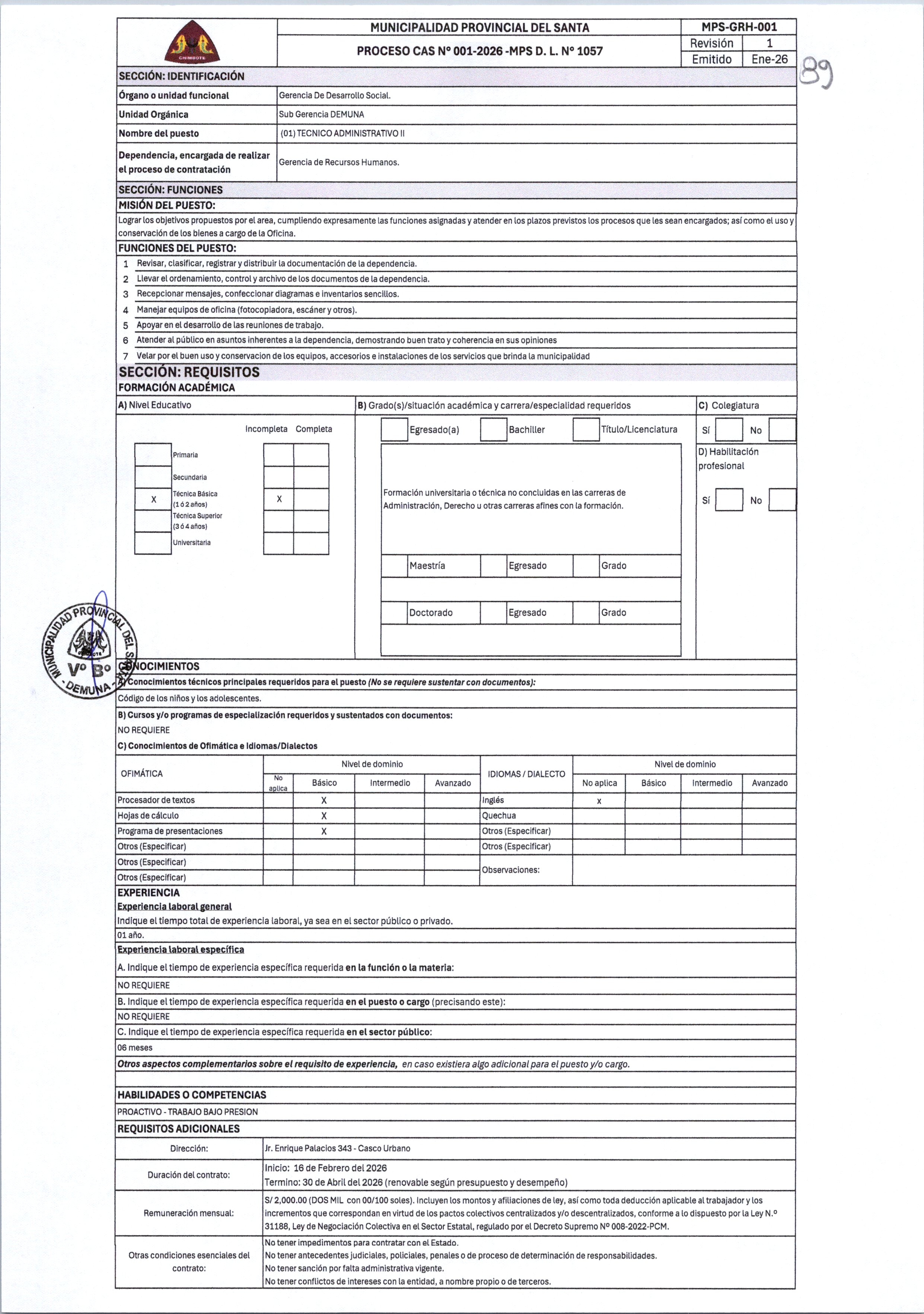| 89 | PROCESO CAS N° 001-2026-MPS TECNICO ADMINISTRATIVO II |