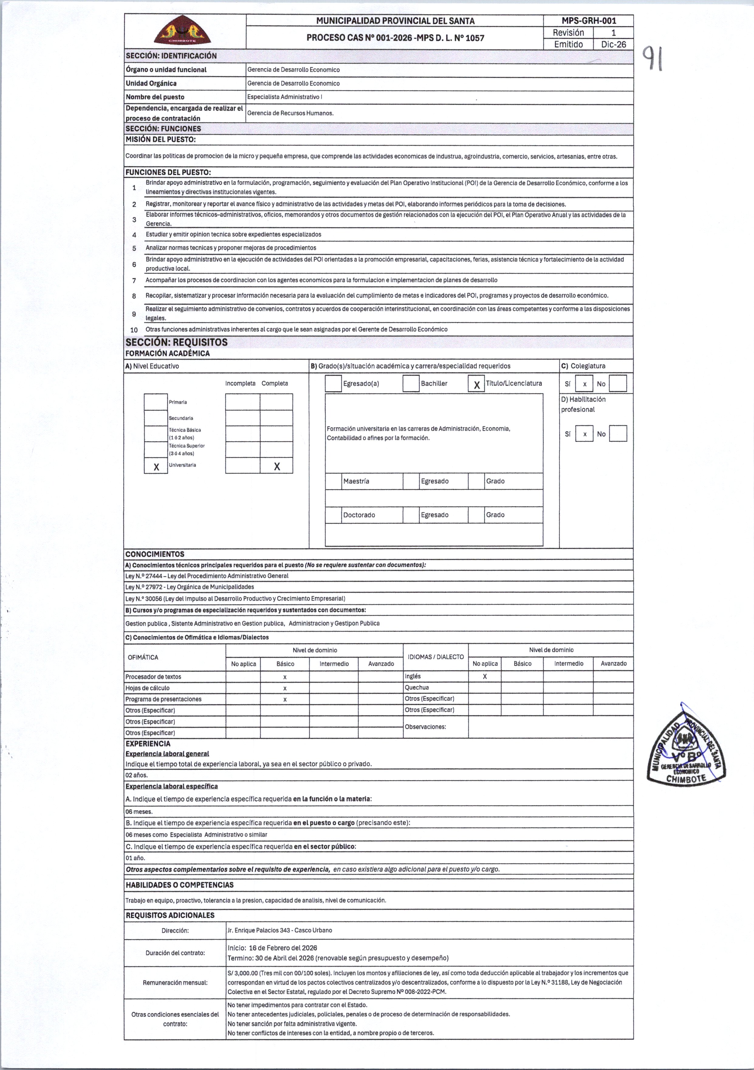 | 91 | PROCESO CAS N° 001-2026-MPS ESPECIALISTA ADMINISTRATIVO I |