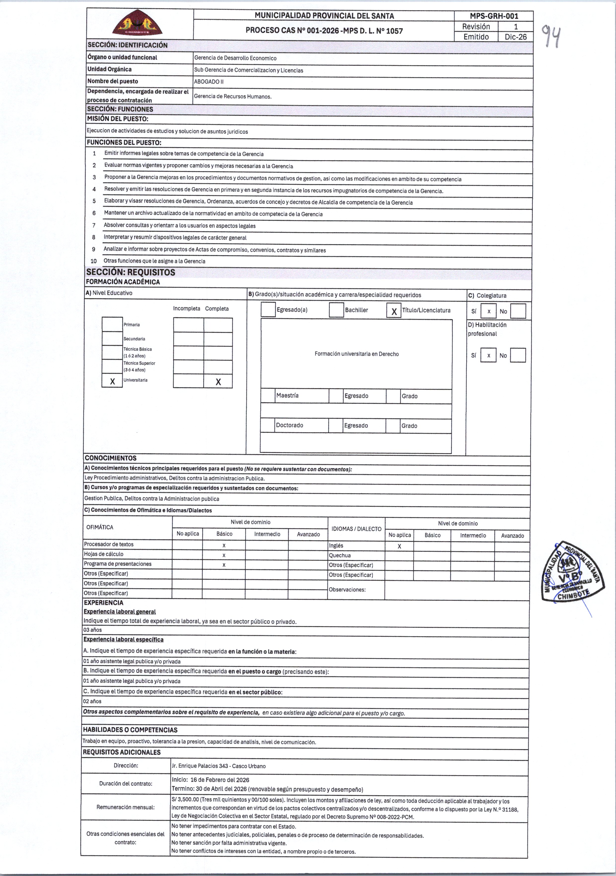 | 94 | PROCESO CAS N° 001-2026-MPS ABOGADO II |