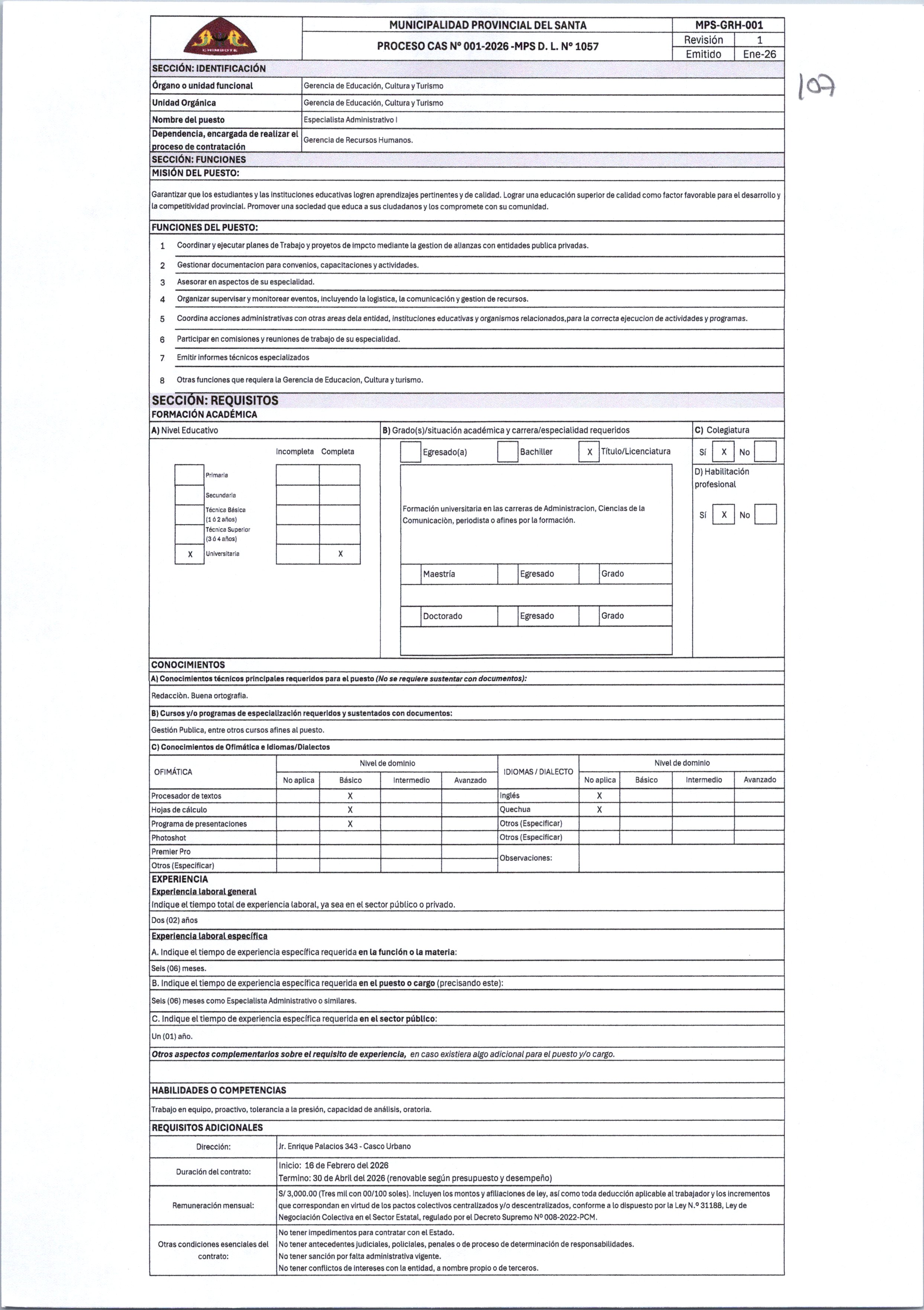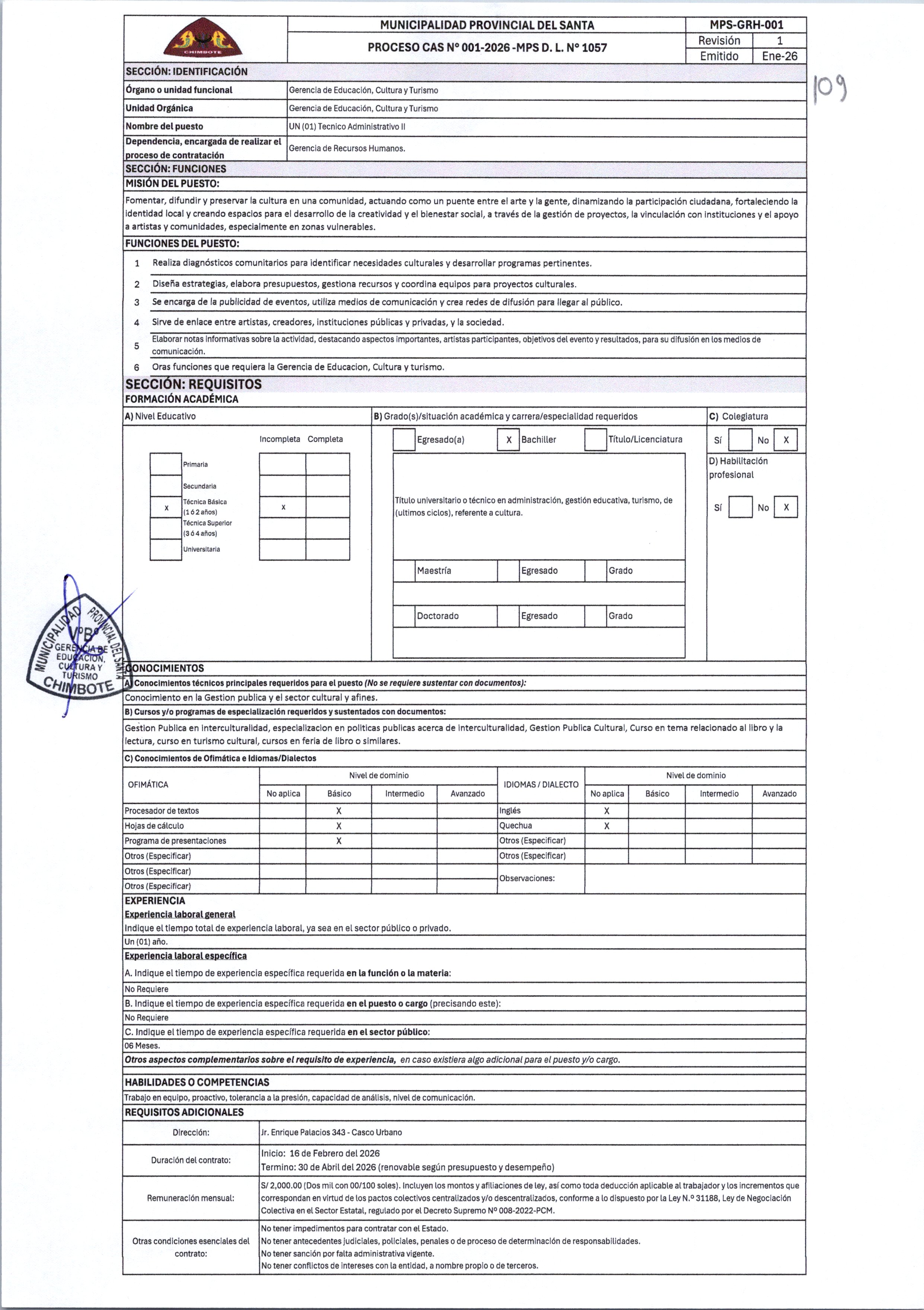 | 109 | PROCESO CAS N° 001-2026-MPS TECNICO ADMINISTRATIVO II |
