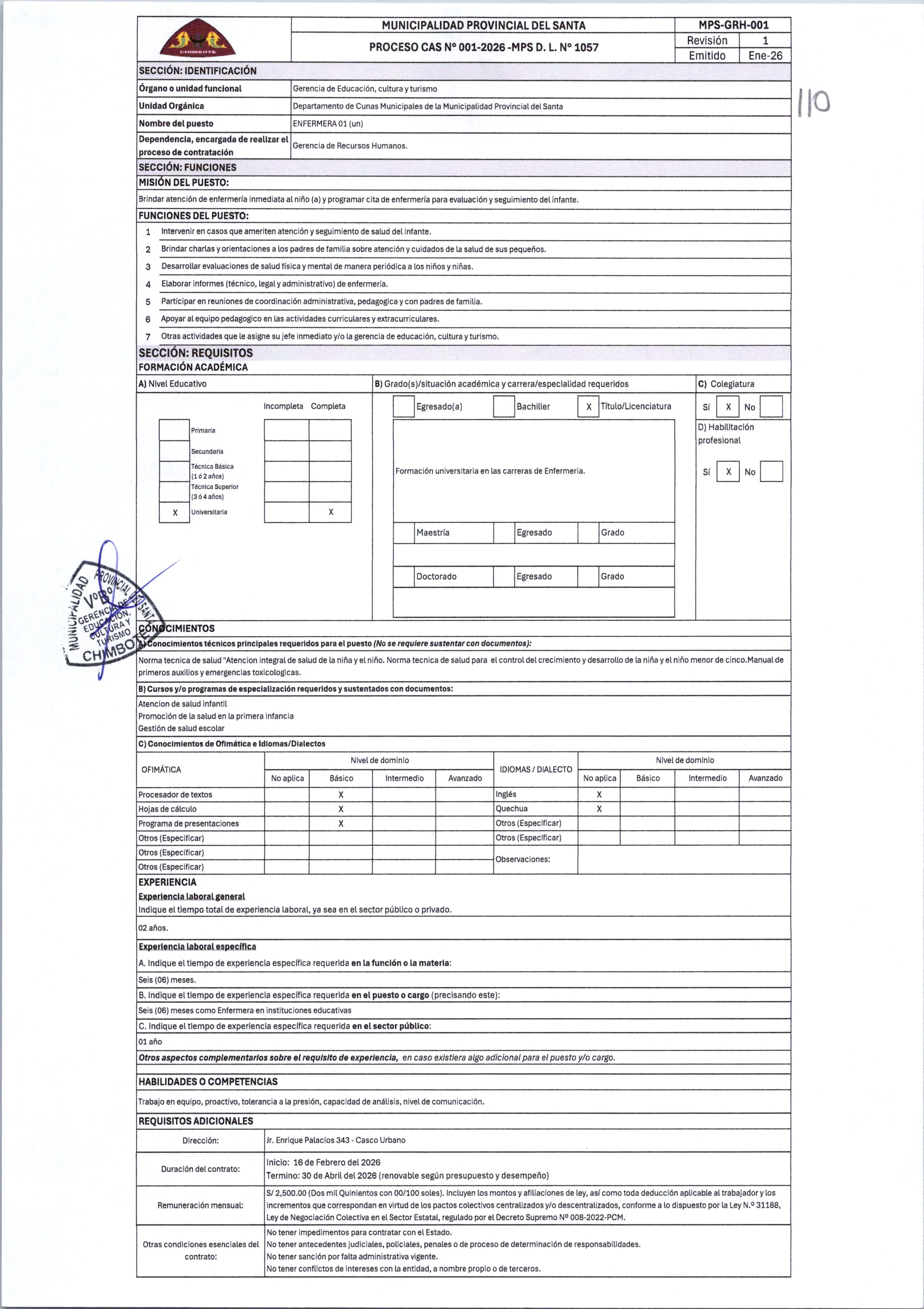 | 125 | PROCESO CAS N° 001-2026-MPS ENFERMERA |