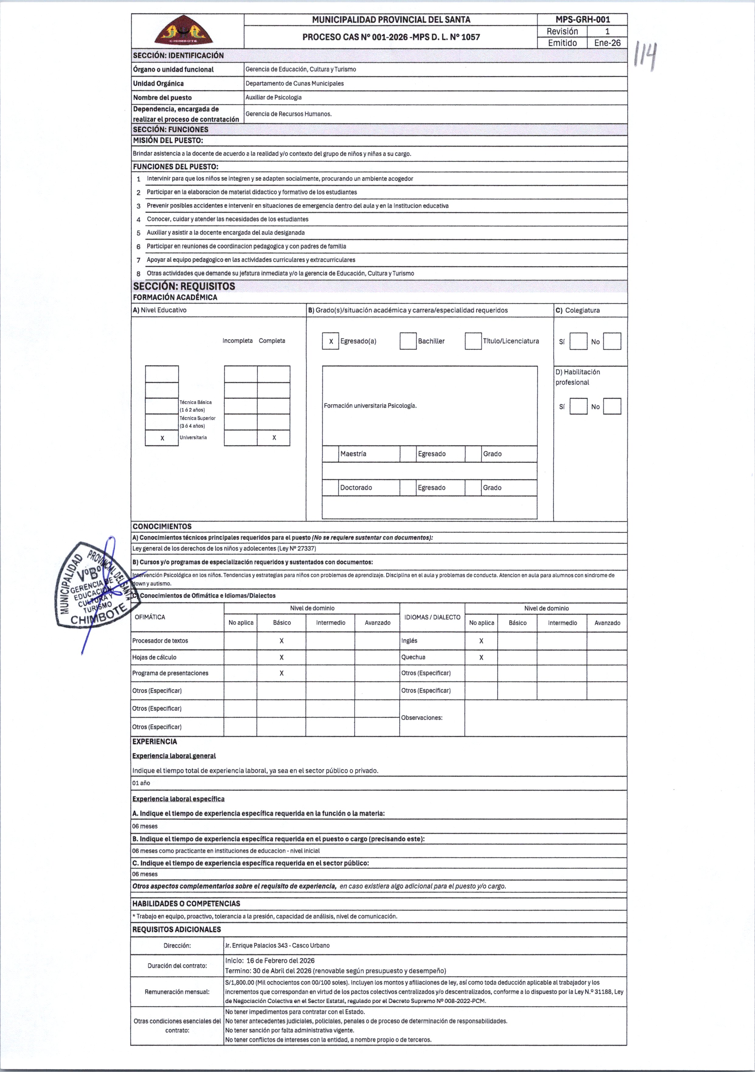 | 114 | PROCESO CAS N° 001-2026-MPS AUXILIAR DE PSICOLOGIA |