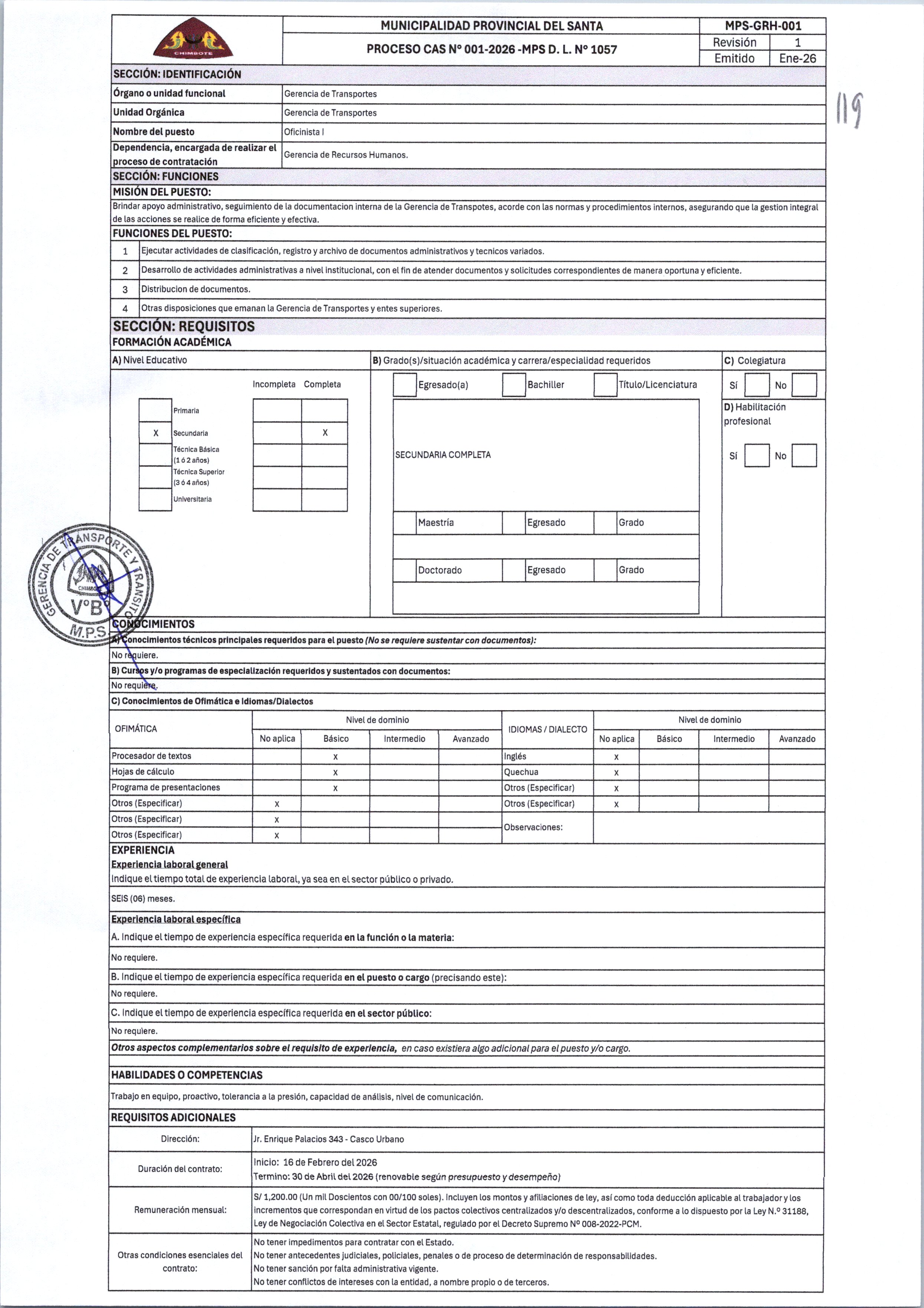 | 119 | PROCESO CAS N° 001-2026-MPS OFICINISTA I |