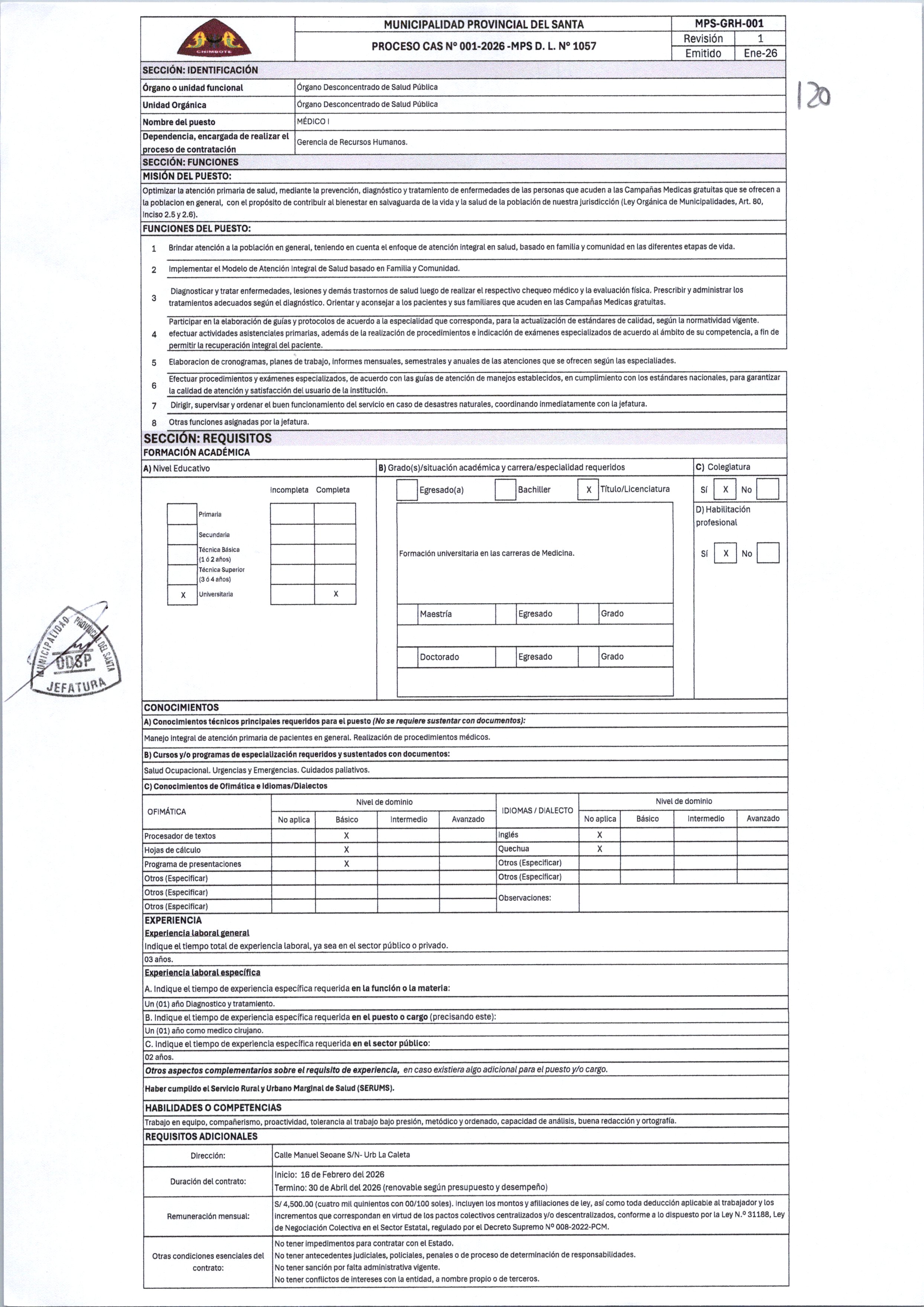 | 120 | PROCESO CAS N° 001-2026-MPS MÉDICO CIRUJANO |