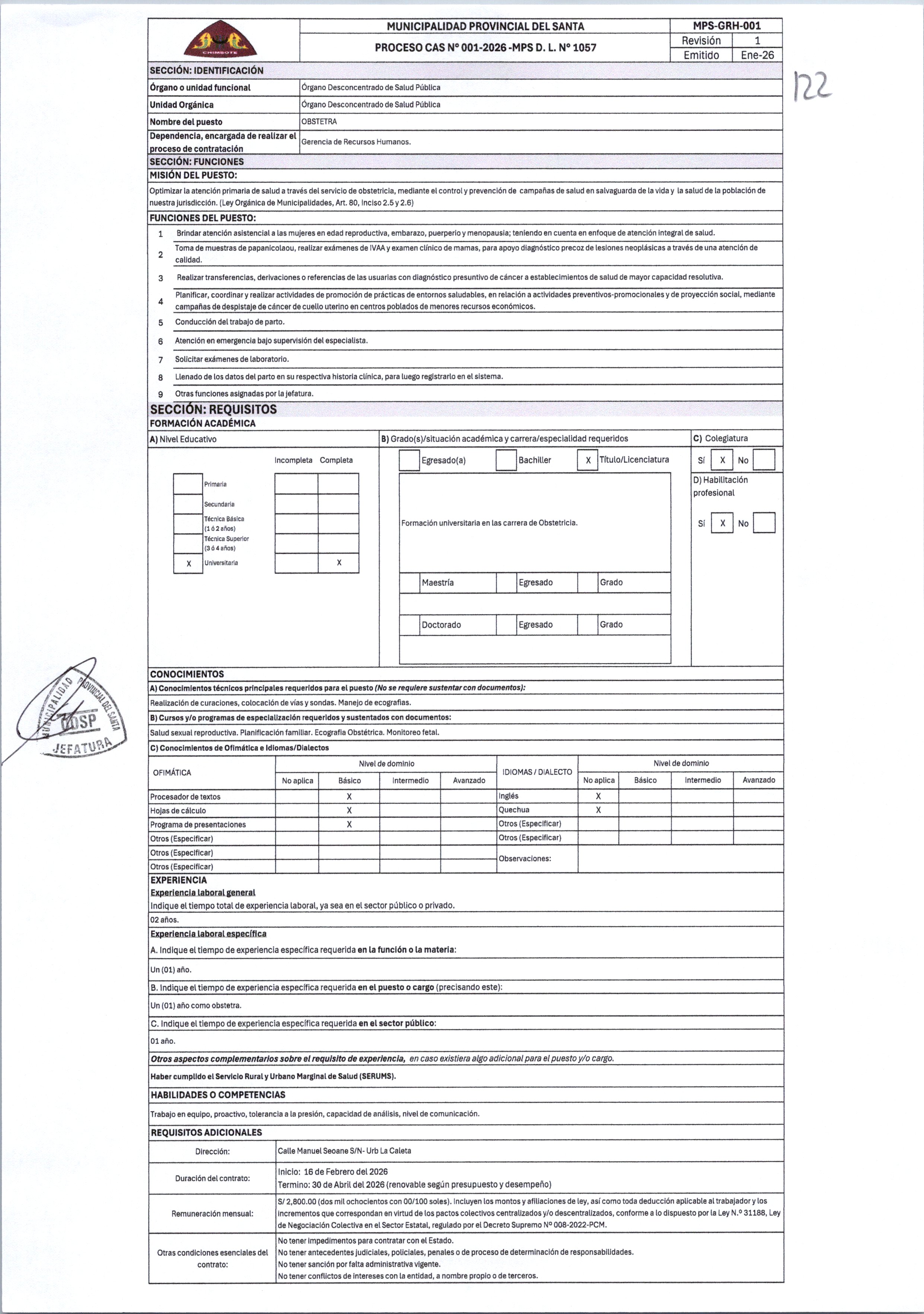 | 122 | PROCESO CAS N° 001-2026-MPS OBSTETRA |