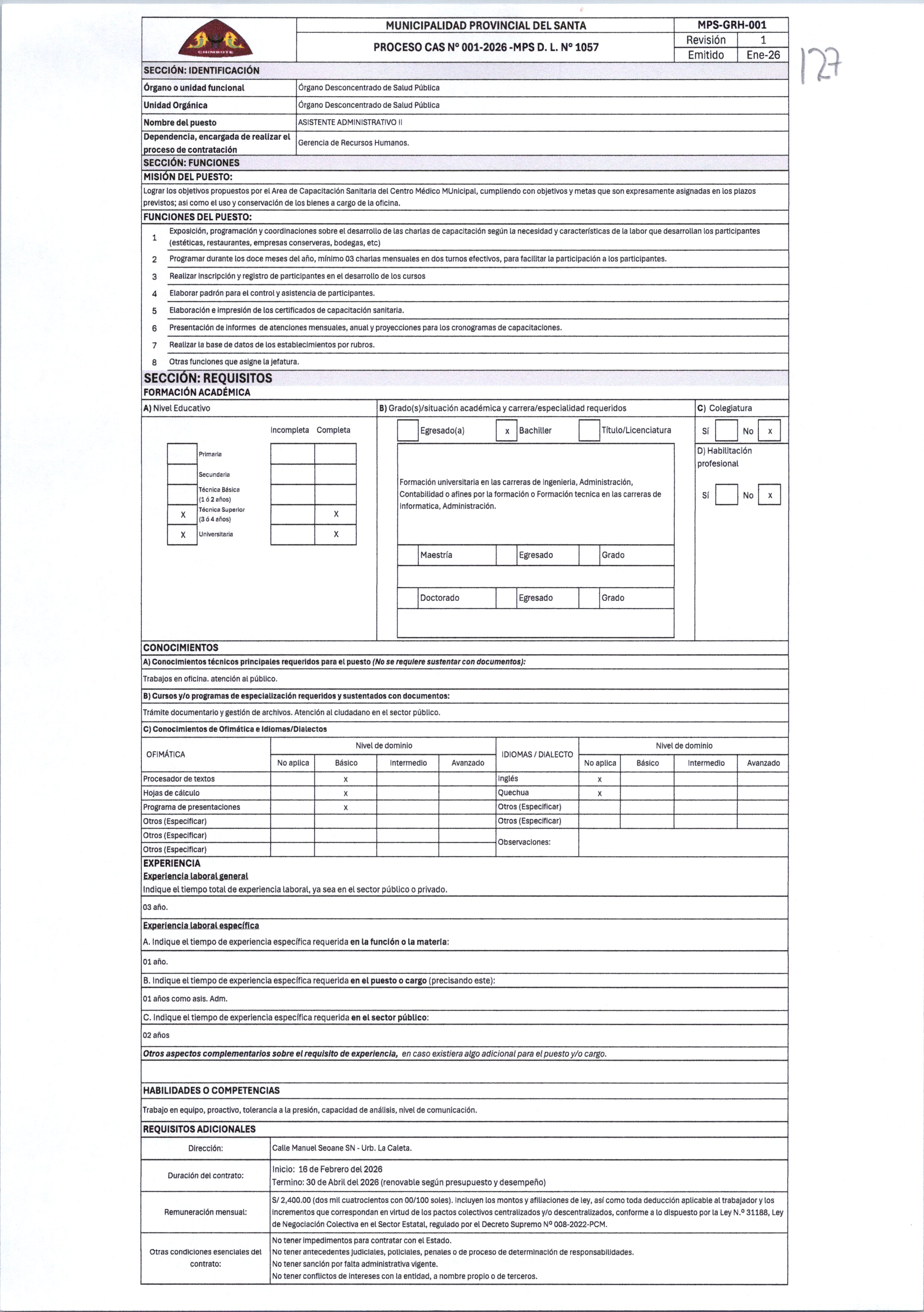 | 127 | PROCESO CAS N° 001-2026-MPS ASISTENTE ADMINISTRATIVO II |