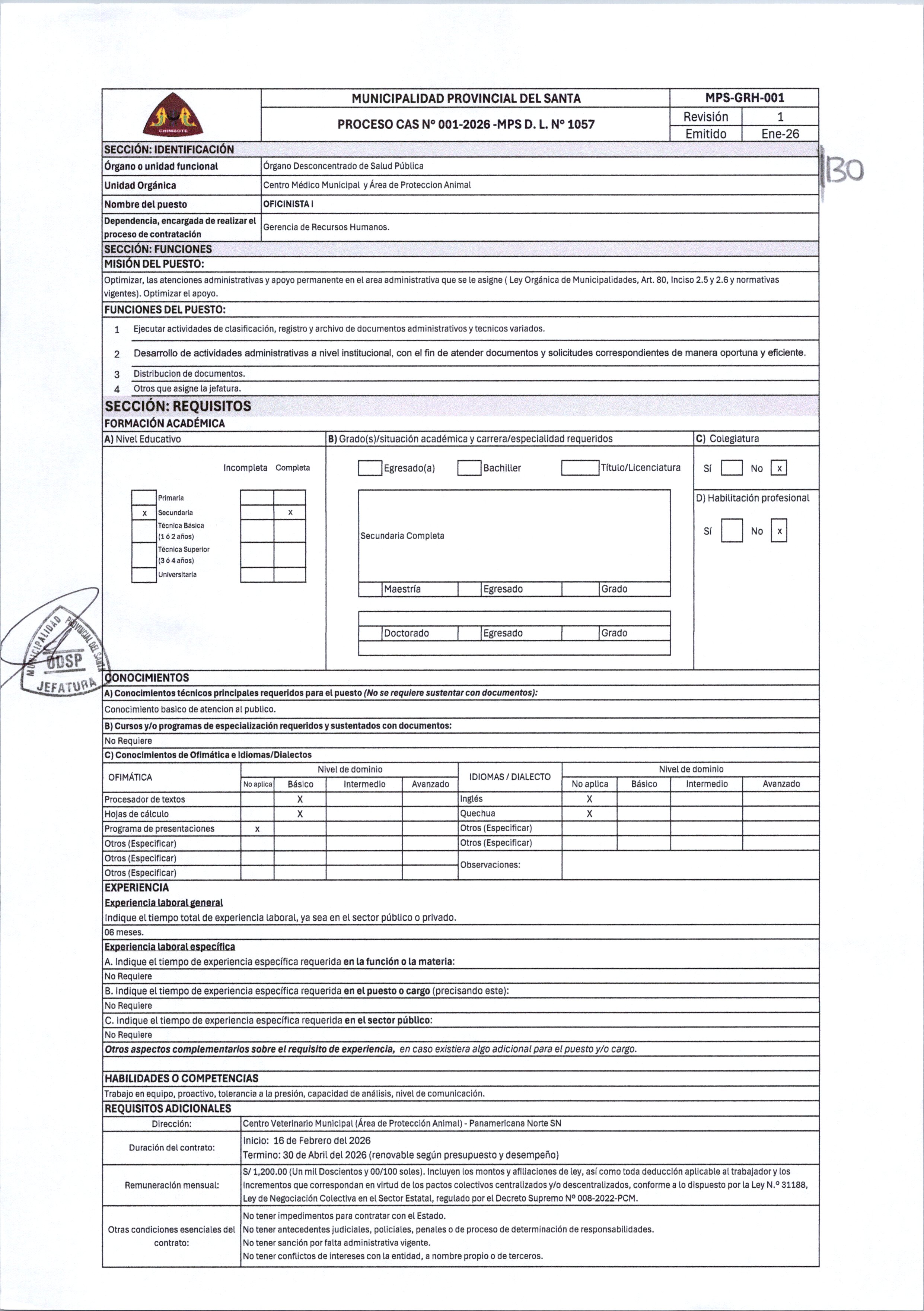 | 130 | PROCESO CAS N° 001-2026-MPS OFICINISTA I |