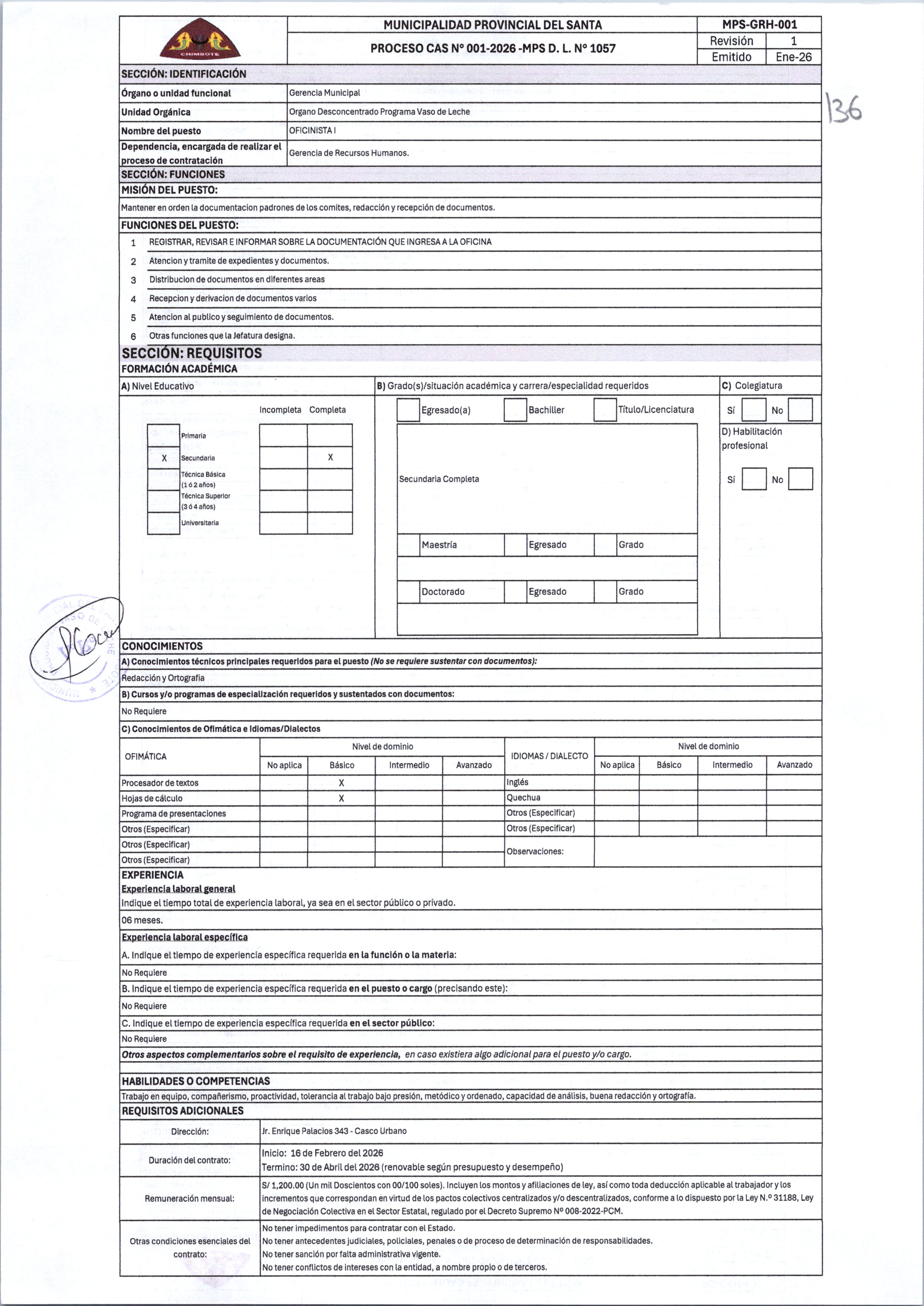 | 136 | PROCESO CAS N° 001-2026-MPS OFICINISTA I |