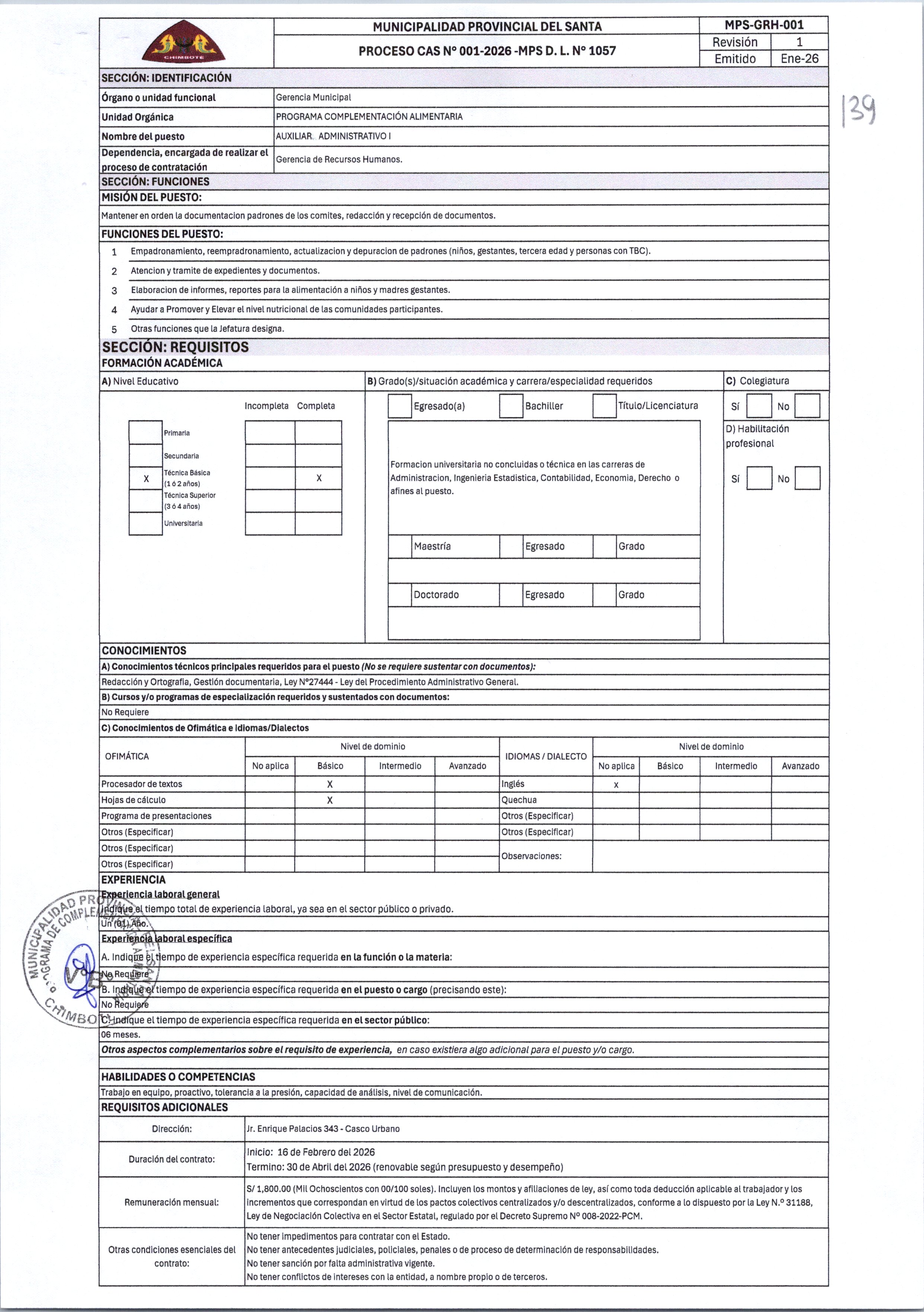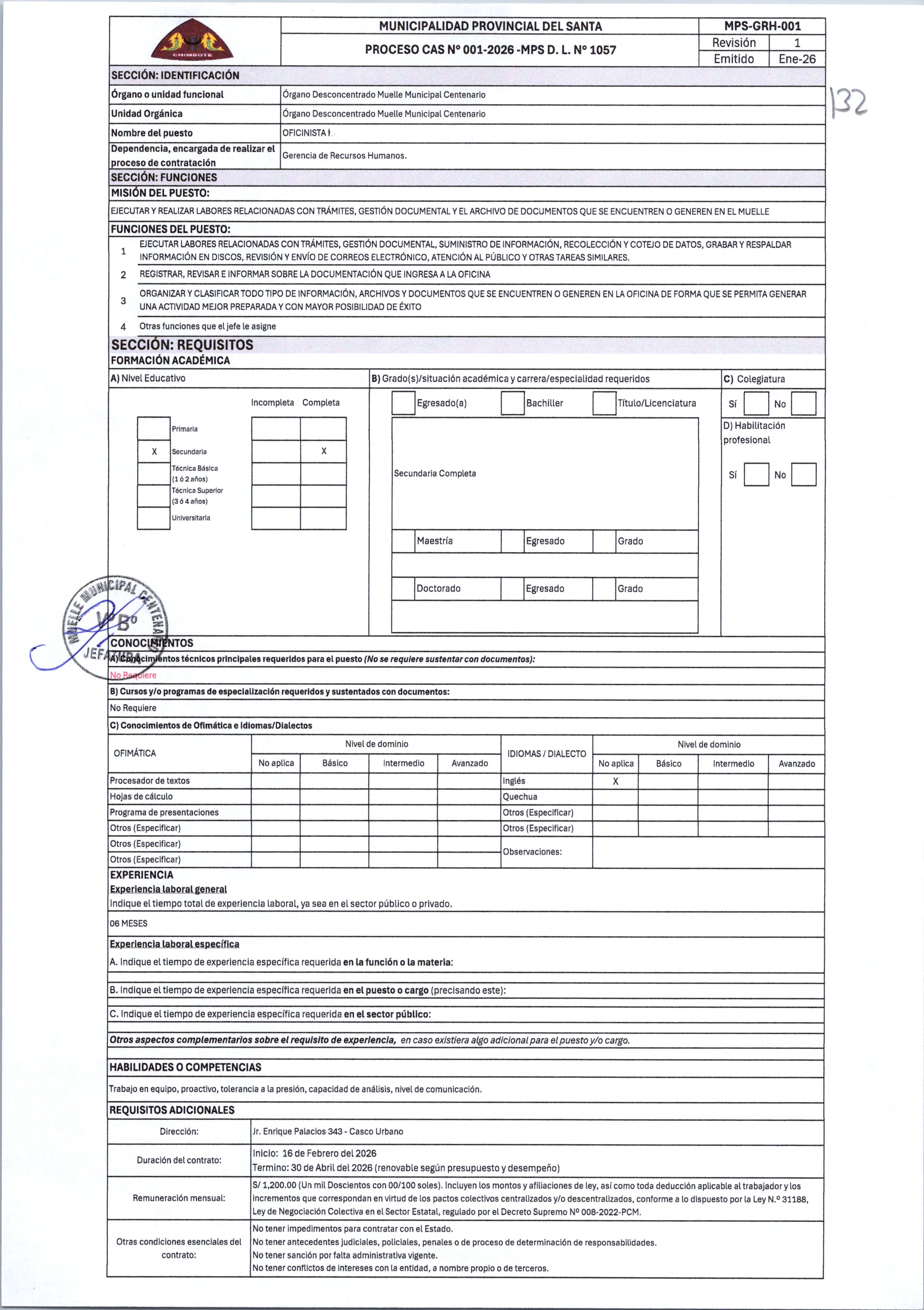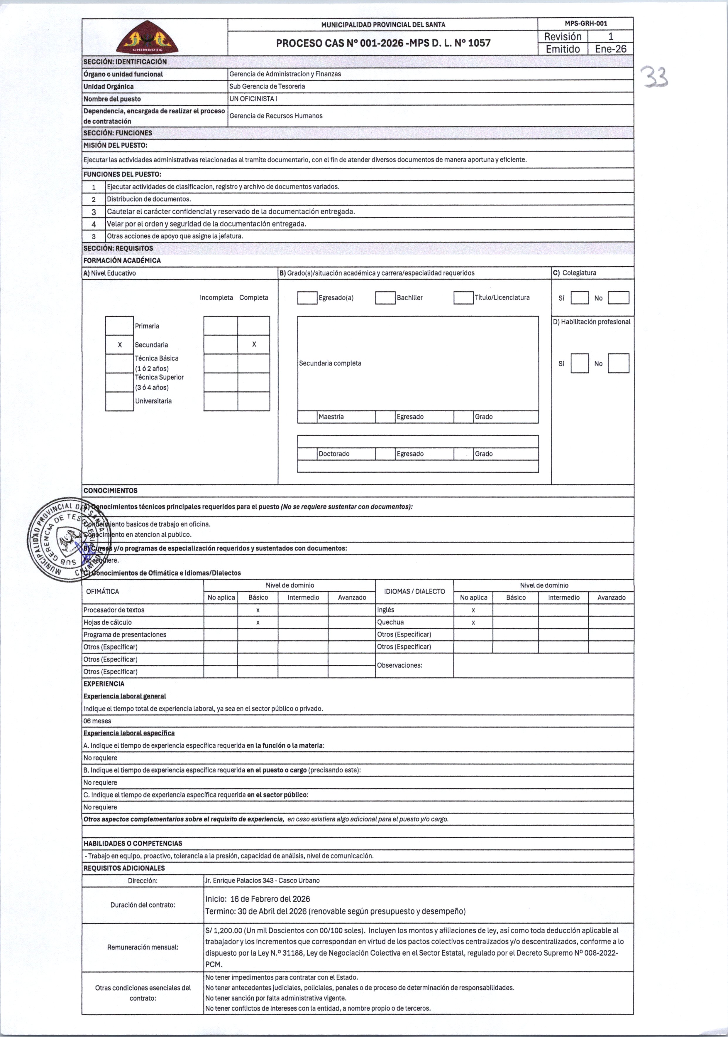 | 33 | PROCESO CAS N° 001-2026-MPS OFICINISTA I |