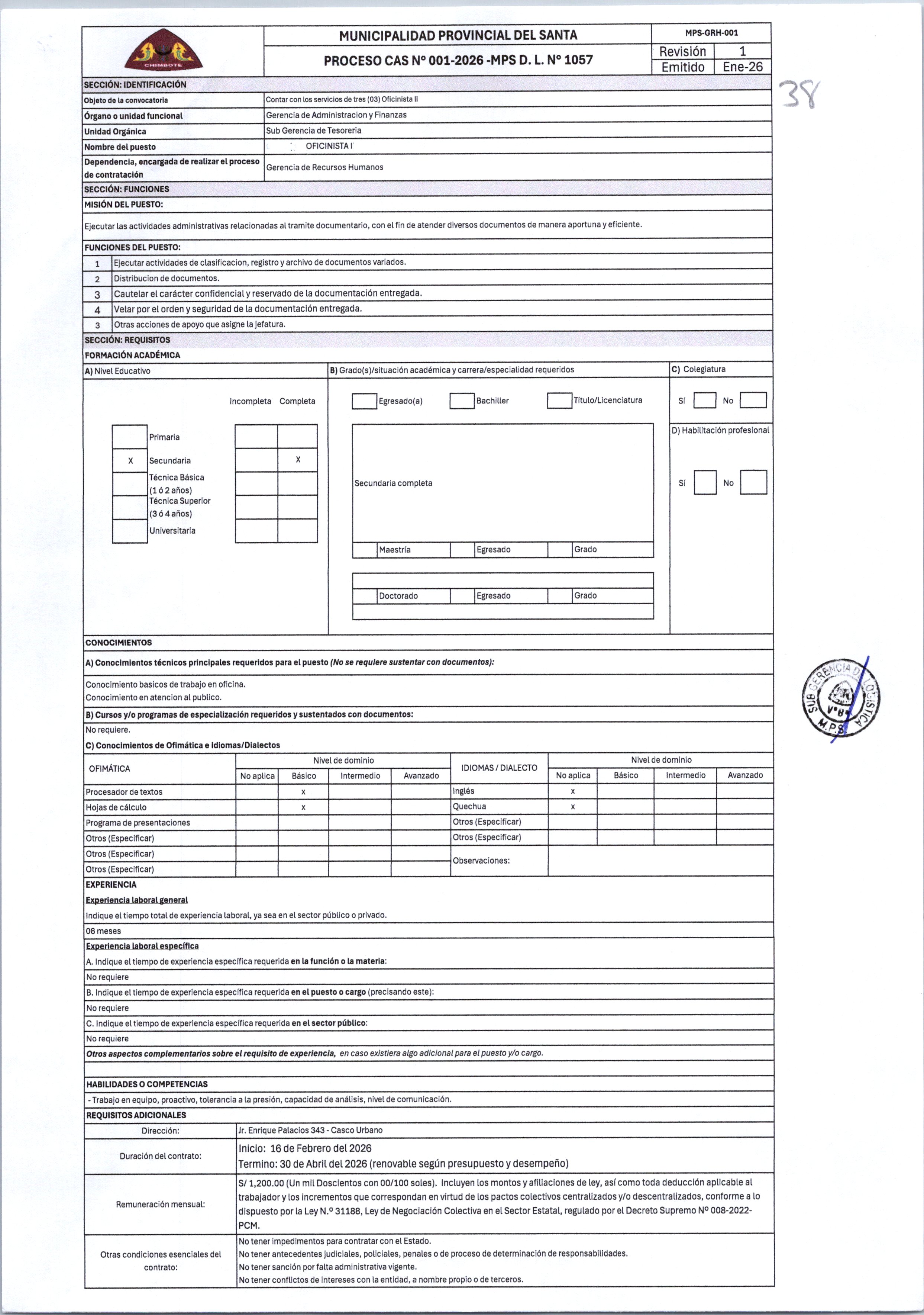 | 38 | PROCESO CAS N° 001-2026-MPS OFICINISTA I |