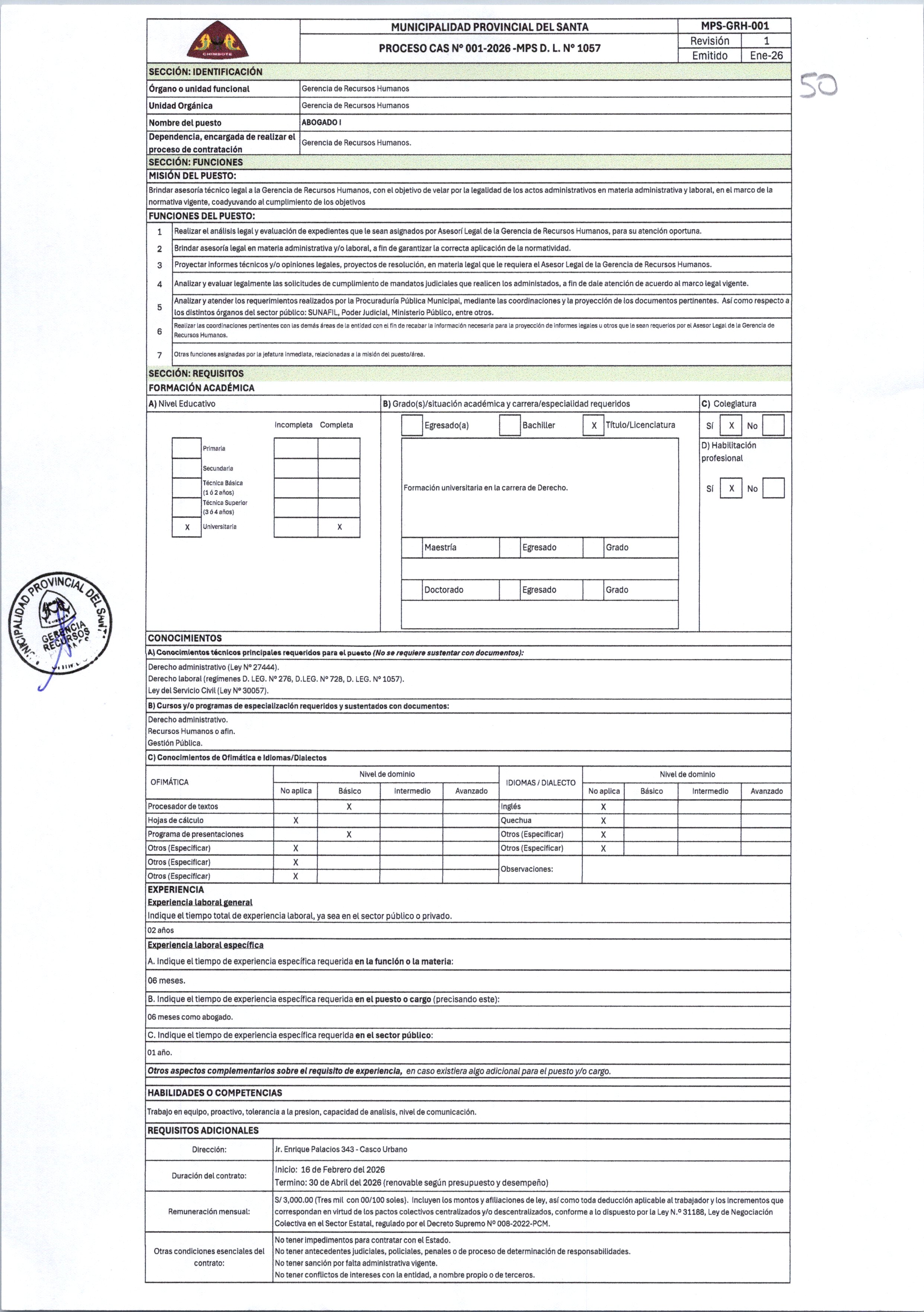 | 50 | PROCESO CAS N° 001-2026-MPS ABOGADO I |