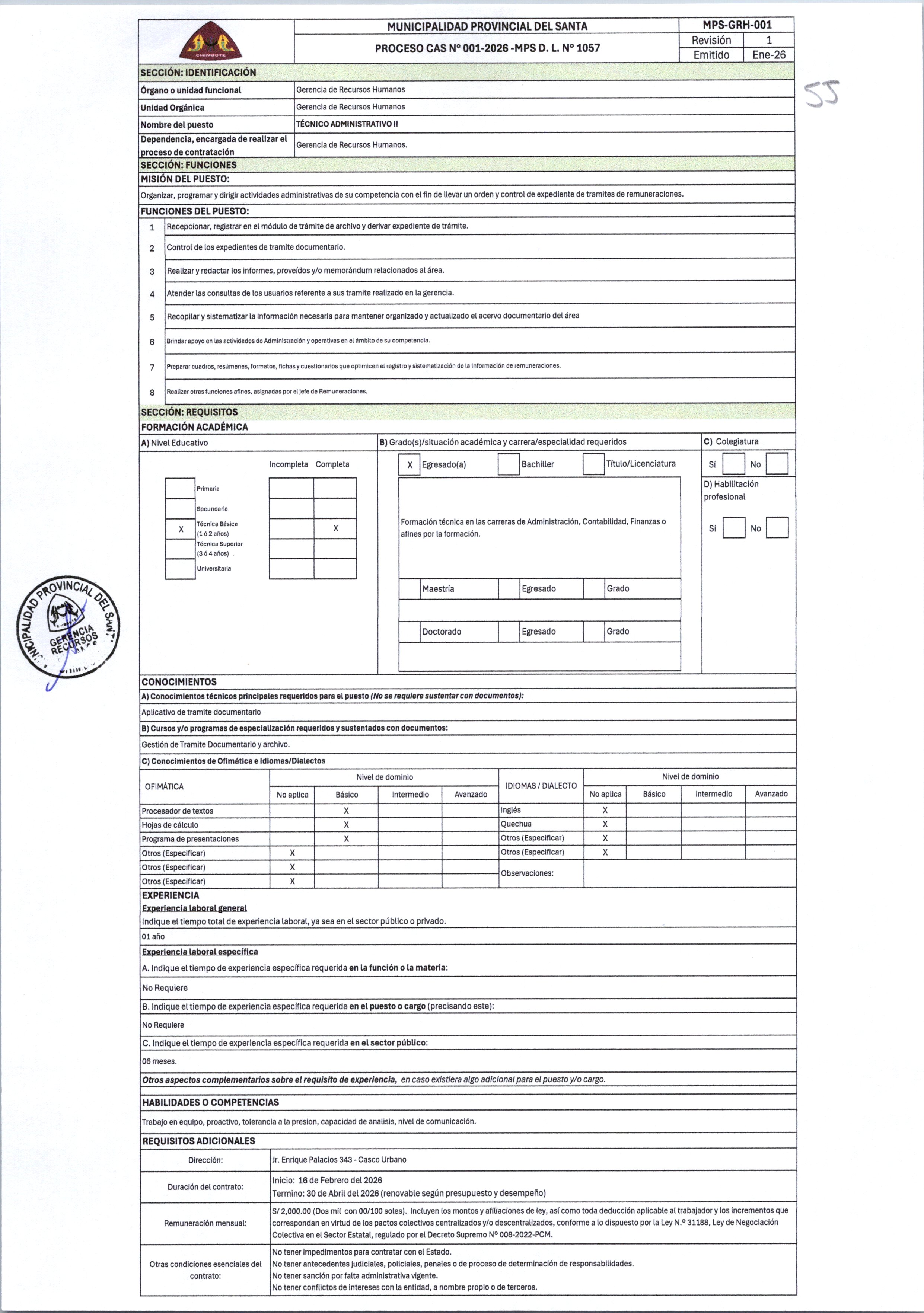 | 55 | PROCESO CAS N° 001-2026-MPS TECNICO ADMINISTRATIVO II |