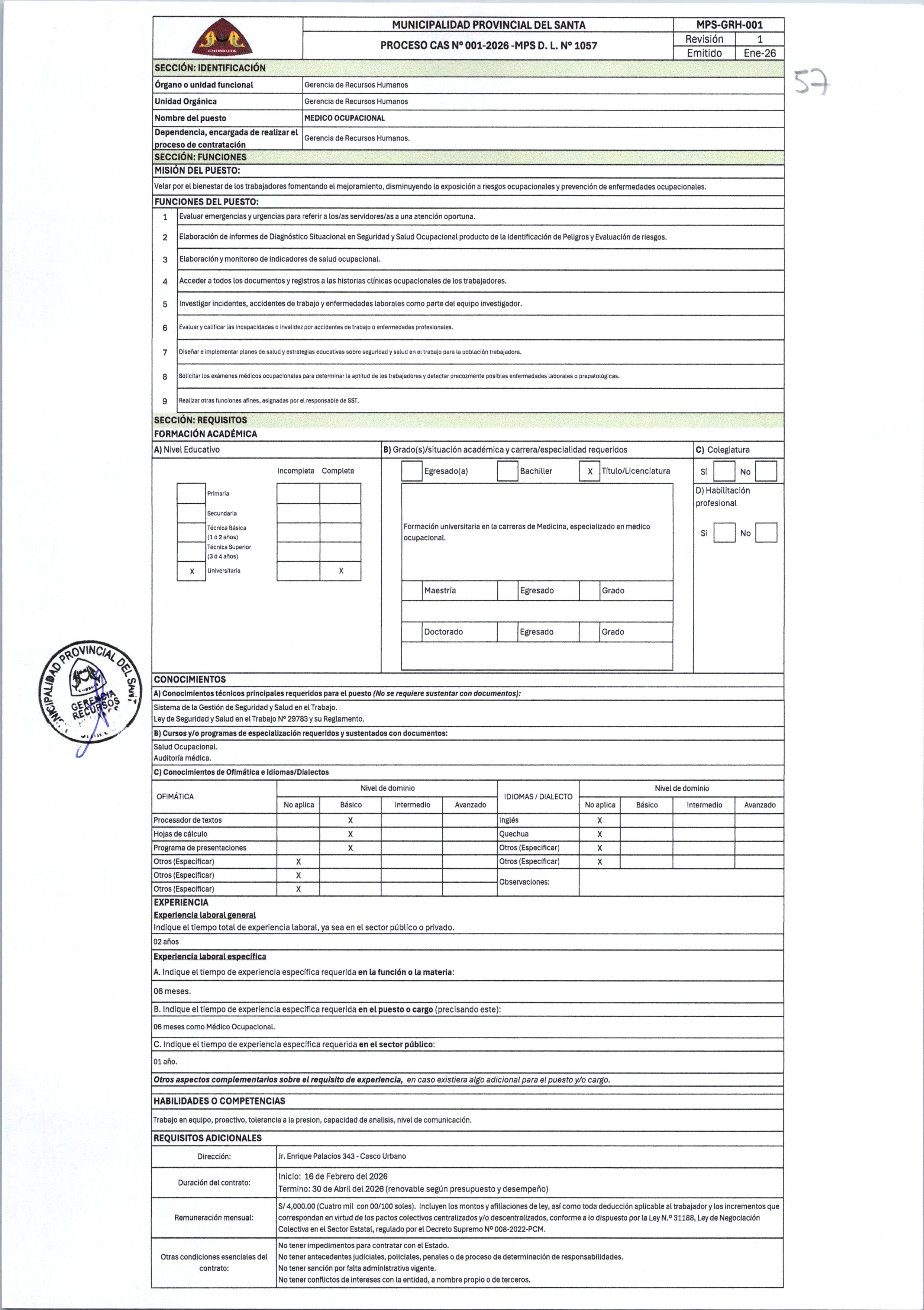| 57 | PROCESO CAS N° 001-2026-MPS MÉDICO OCUPACIONAL |