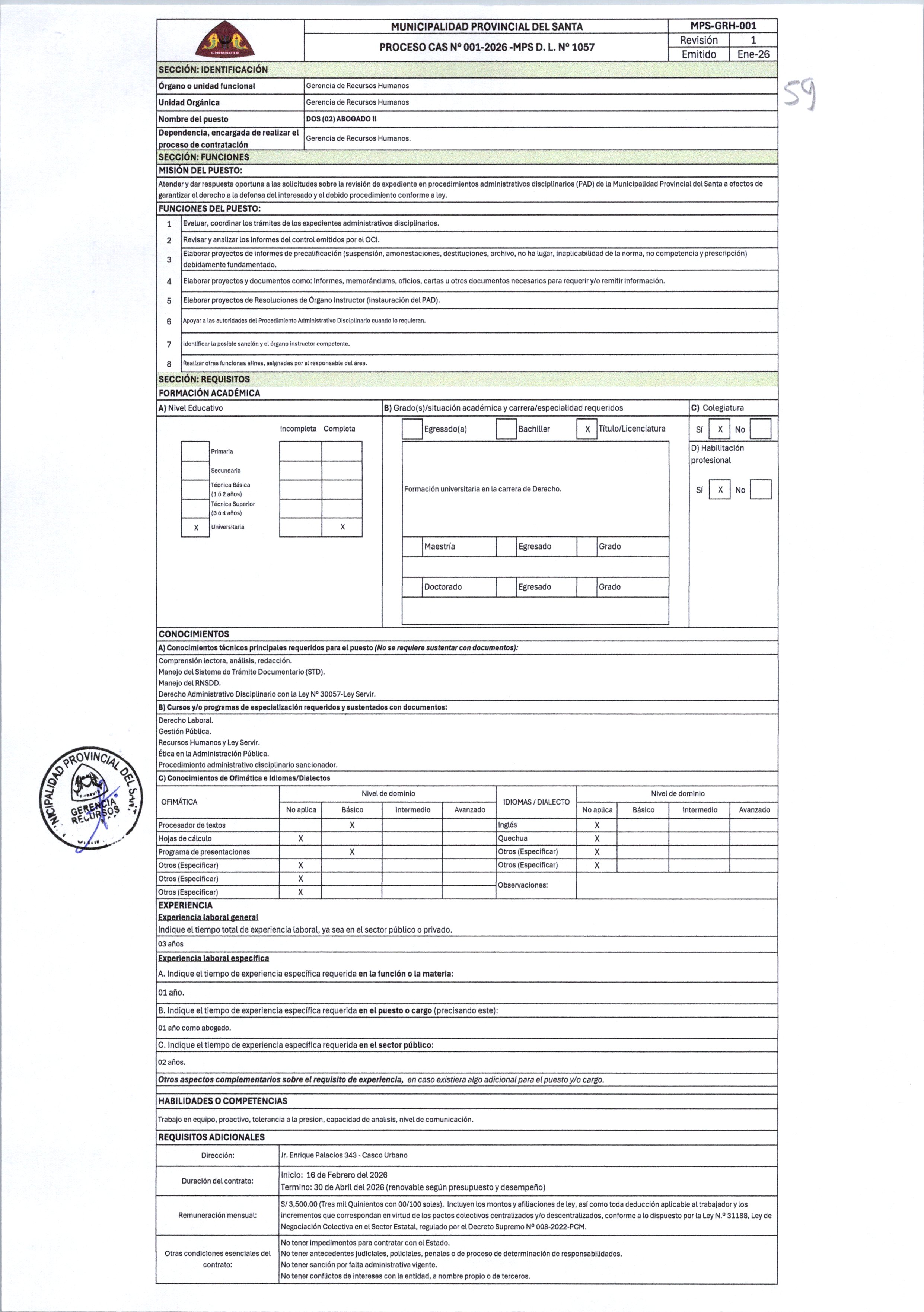 | 59 | PROCESO CAS N° 001-2026-MPS ESPECIALISTA LEGAL EN PAD |