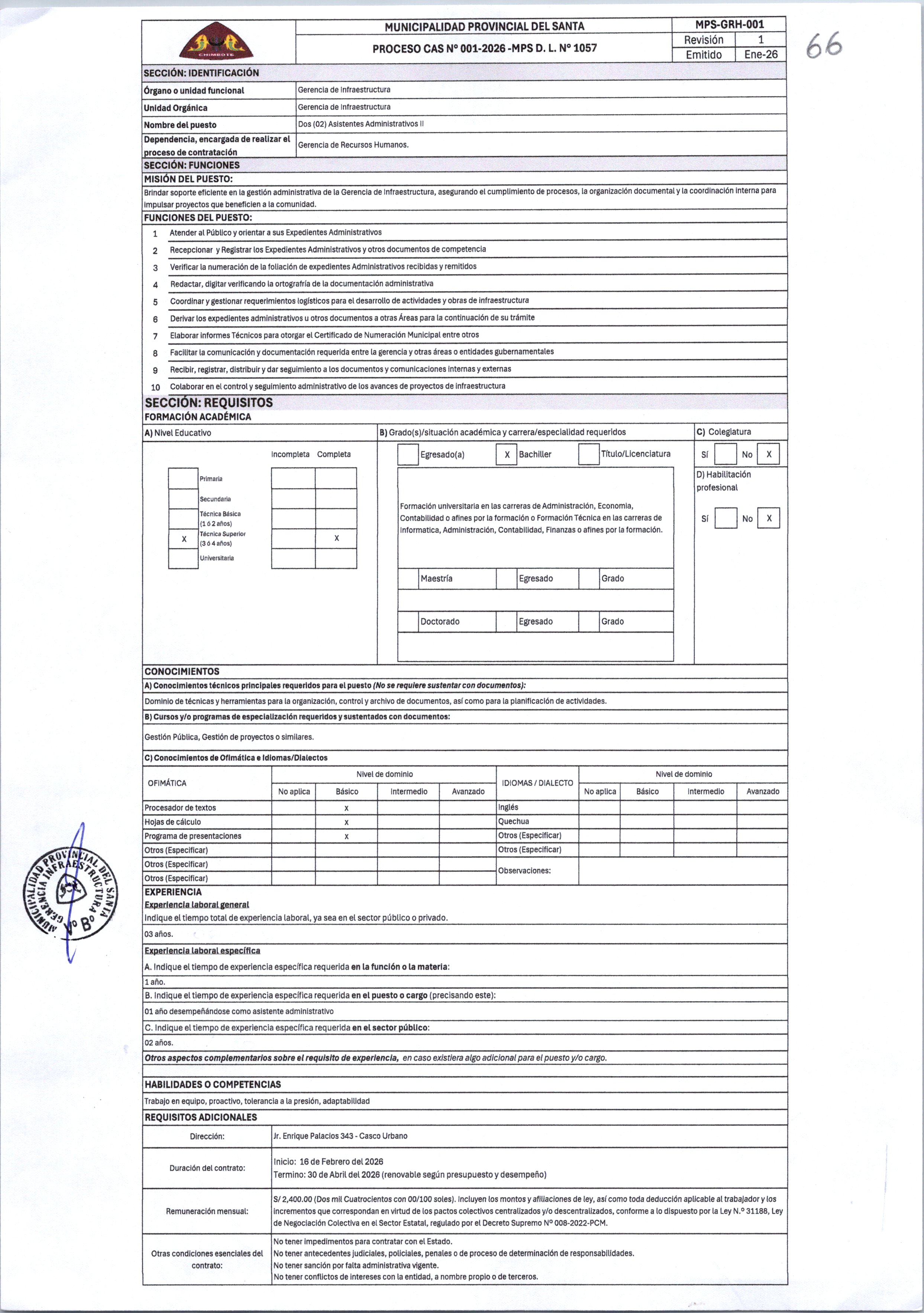 | 66 | PROCESO CAS N° 001-2026-MPS ASISTENTE ADMINISTRATIVO II |
