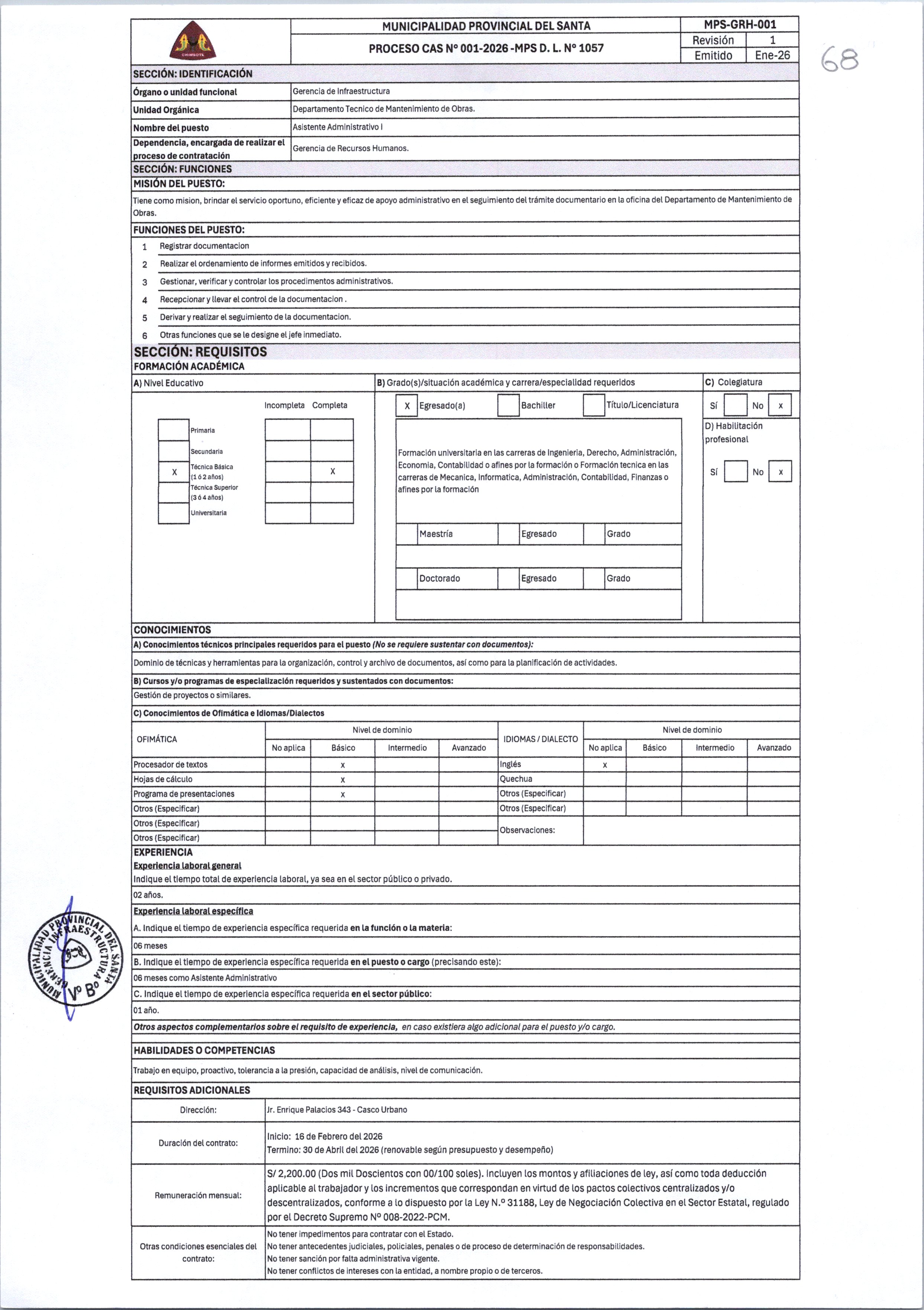 | 68 | PROCESO CAS N° 001-2026-MPS ASISTENTE ADMINISTRATIVO I |