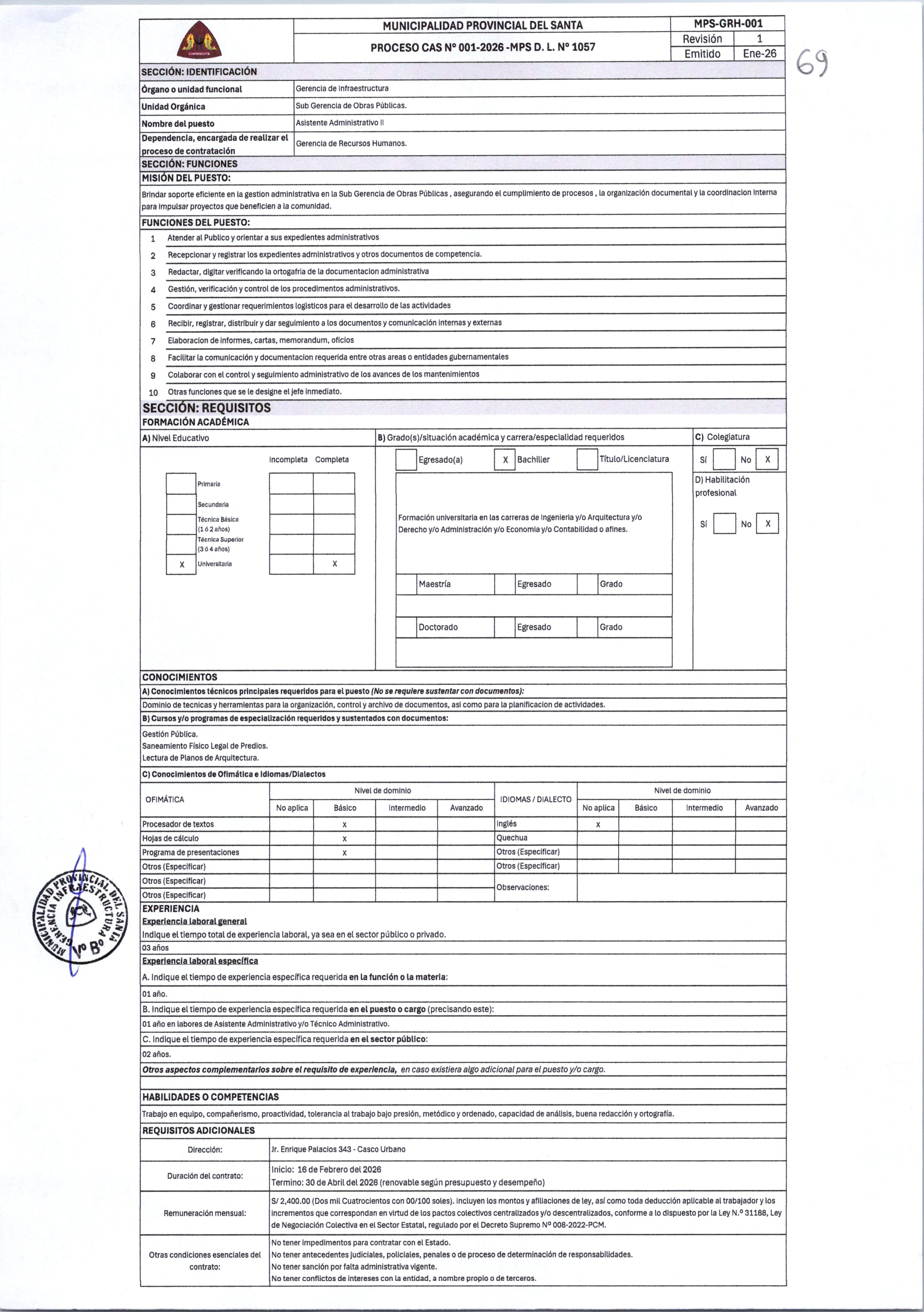 | 69 | PROCESO CAS N° 001-2026-MPS ASISTENTE ADMINISTRATIVO II |