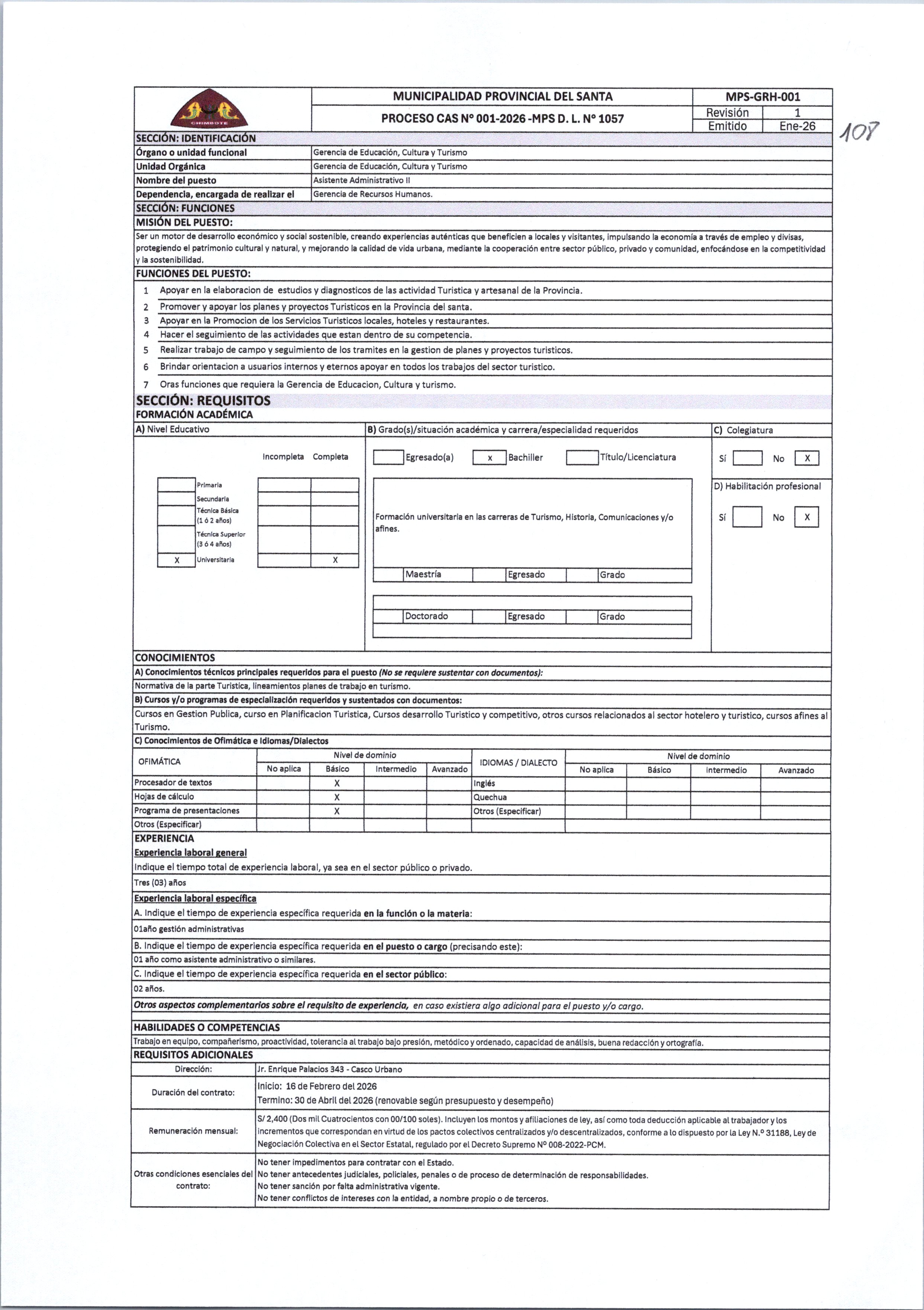 | 108 | PROCESO CAS N° 001-2026-MPS ASISTENTE ADMINISTRATIVO II |